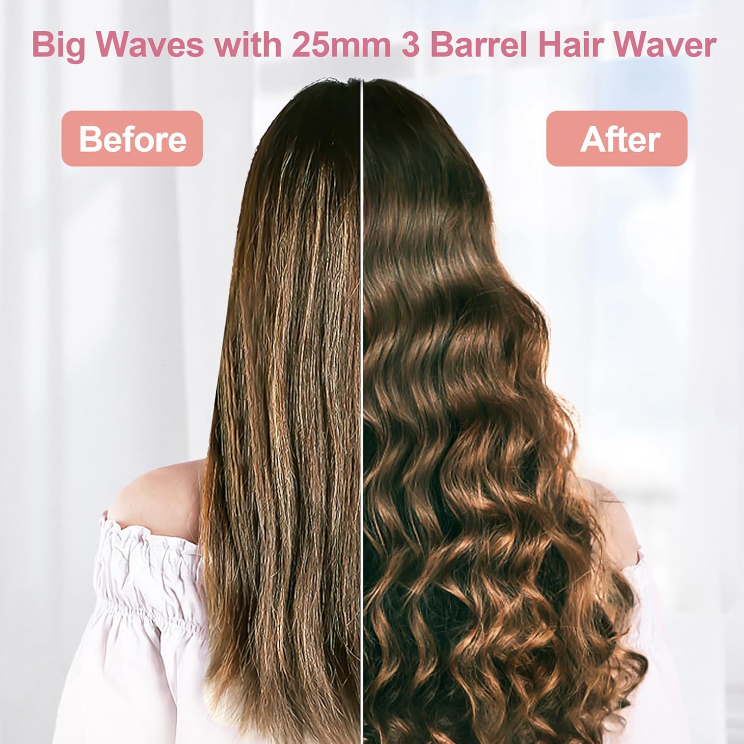 Krultang van 25 mm met 3 buizen, moeiteloze strandgolven met snelverwarmingstechnologie en keramische toermalijncoating, krulspelden voor lang of kort haar