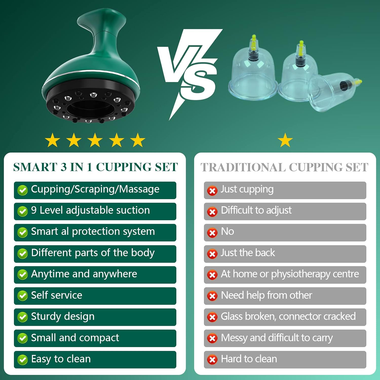 Nauwkeurig design: het massageapparaat maakt gebruik van een centrifugale vacuümpomp en een precisiecilinder die een snelle zuigkracht mogelijk maakt door snel een luchtstroom te produceren en een centrifugale kracht te genereren. De basis van het massagetas-apparaat heeft een professioneel zweefpunctuurontwerp met drie halfronde acupunctuurstenen, die gelijkmatig krassen zonder te trekken en minder pijnlijk te zijn, waardoor het geschikt is voor massage van vele delen van het lichaam.