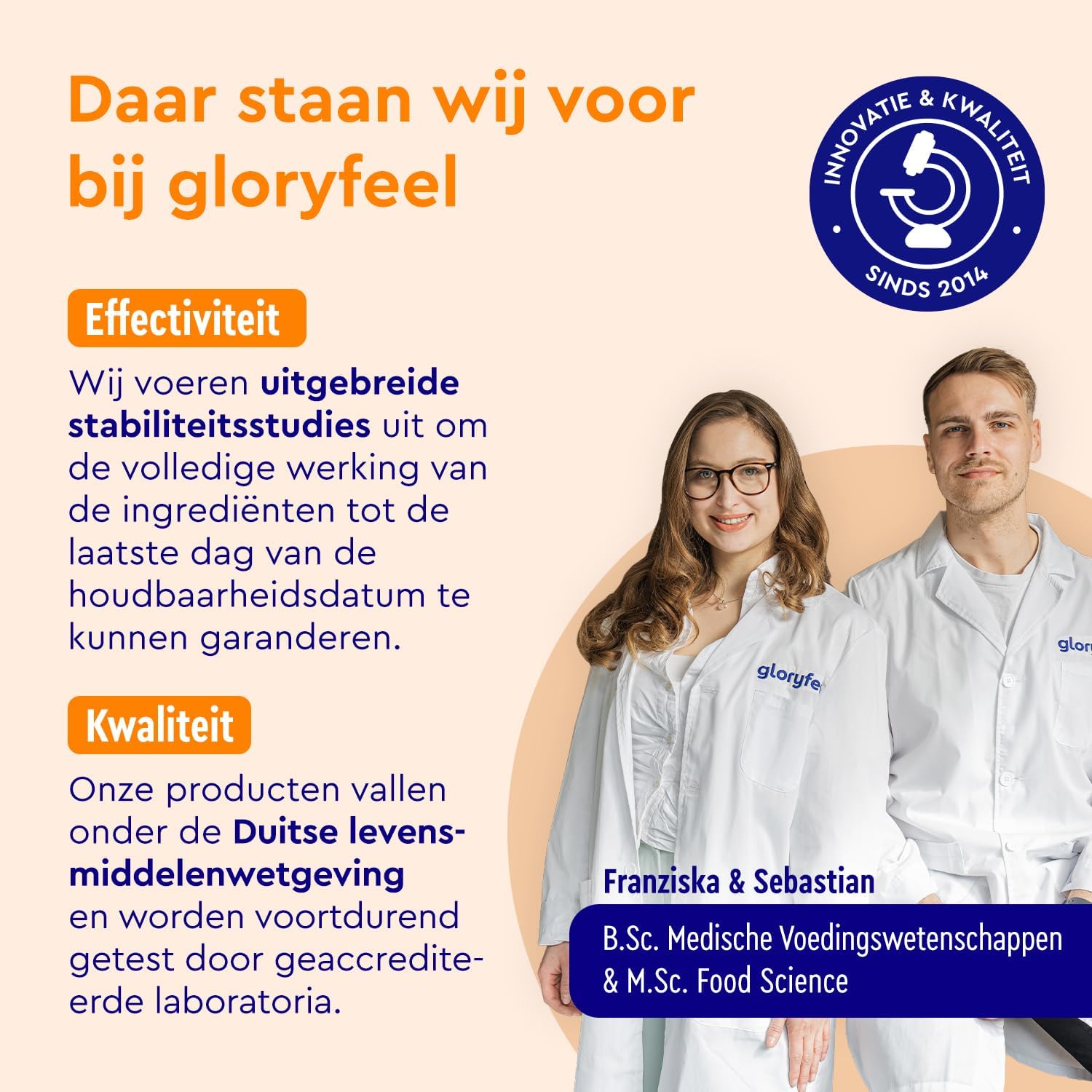 🔬 KWALITEIT EN STABILITEIT OP HET HOOGSTE NIVEAUN – Geproduceerd in Duitsland volgens de strengste normen (ISO, HACCP gecertificeerd), ondergaan gloryfeel producten strenge stabiliteitstests om een constante werkzaamheid over tijd te garanderen en nieuwe industriestandaarden te stellen. Deze baanbrekende aanpak benadrukt onze toonaangevende rol in kwaliteitsborging. Analysecertificaten beschikbaar.
