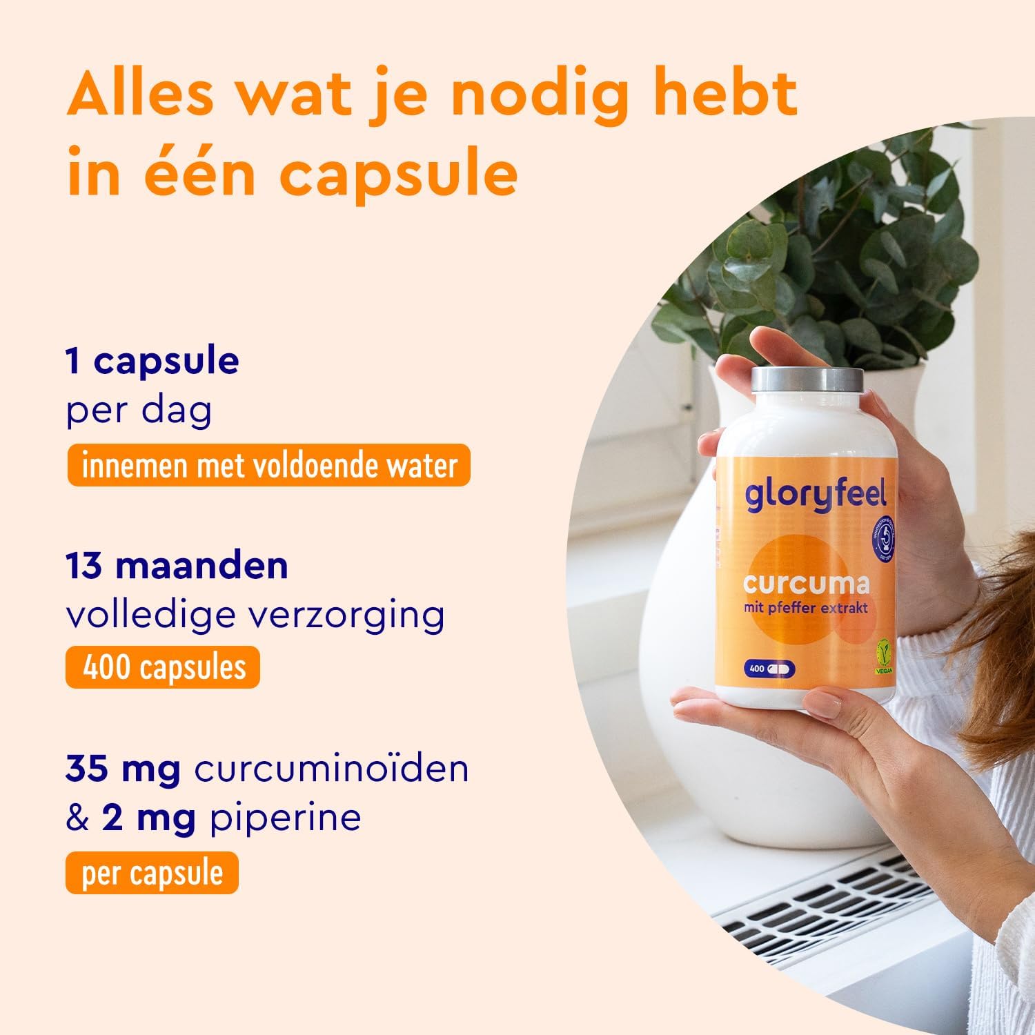 💊 400 CAPSULES VOOR 13 MAANDEN VOLLEDIGE BEVOORRADING – BESTE PRIJS-KWALITEITSVERHOUDING – 400 hooggedoseerde Kurkuma-capsules zijn voldoende voor een volledige bevoorrading van 13 maanden tegen de beste prijs-kwaliteitverhouding.