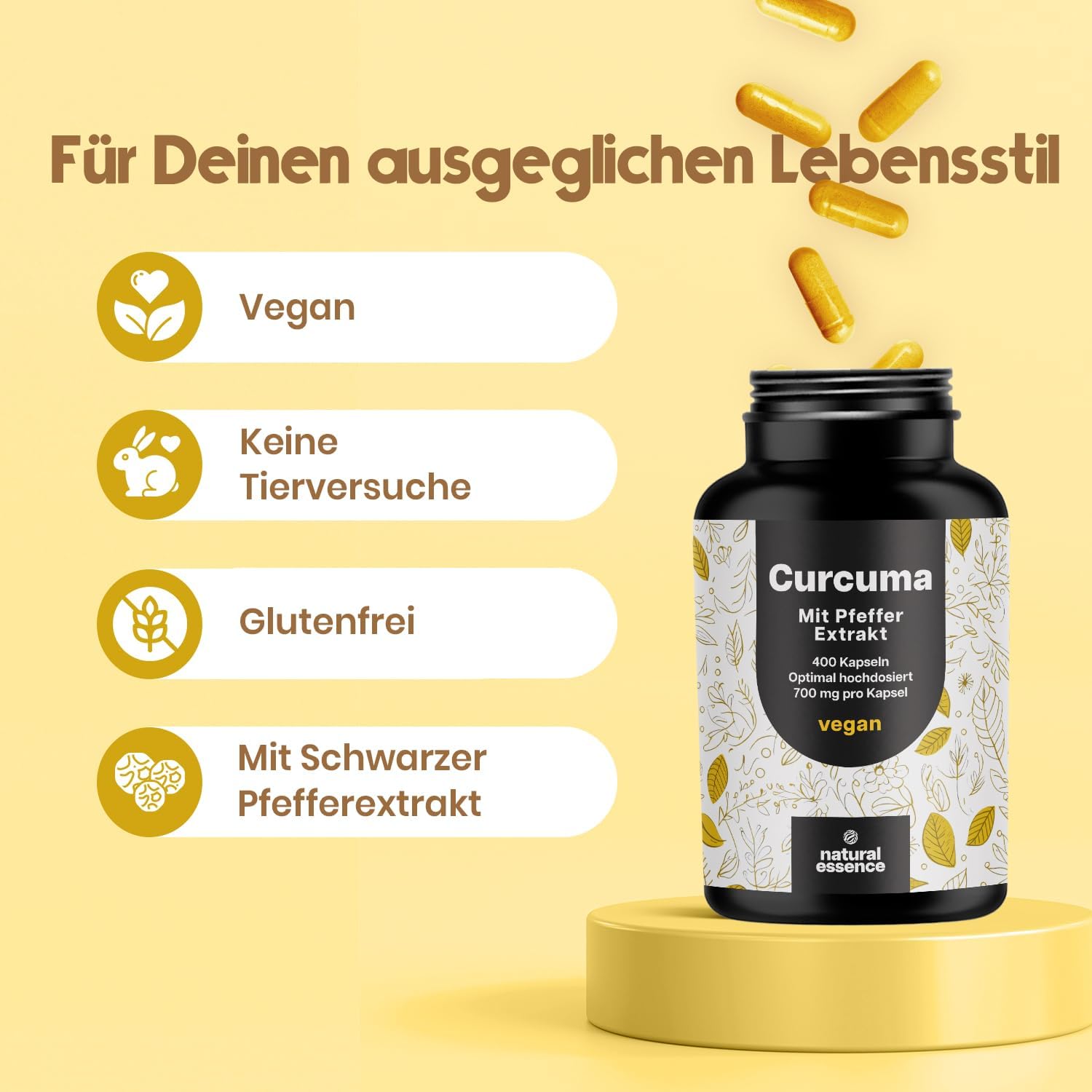 Kurkuma capsules hoge dosis – 400 capsules met 700 mg met curcumine & piperine – origineel uit India – veganistisch – Curcuma capsules hoge dosis v.1.0