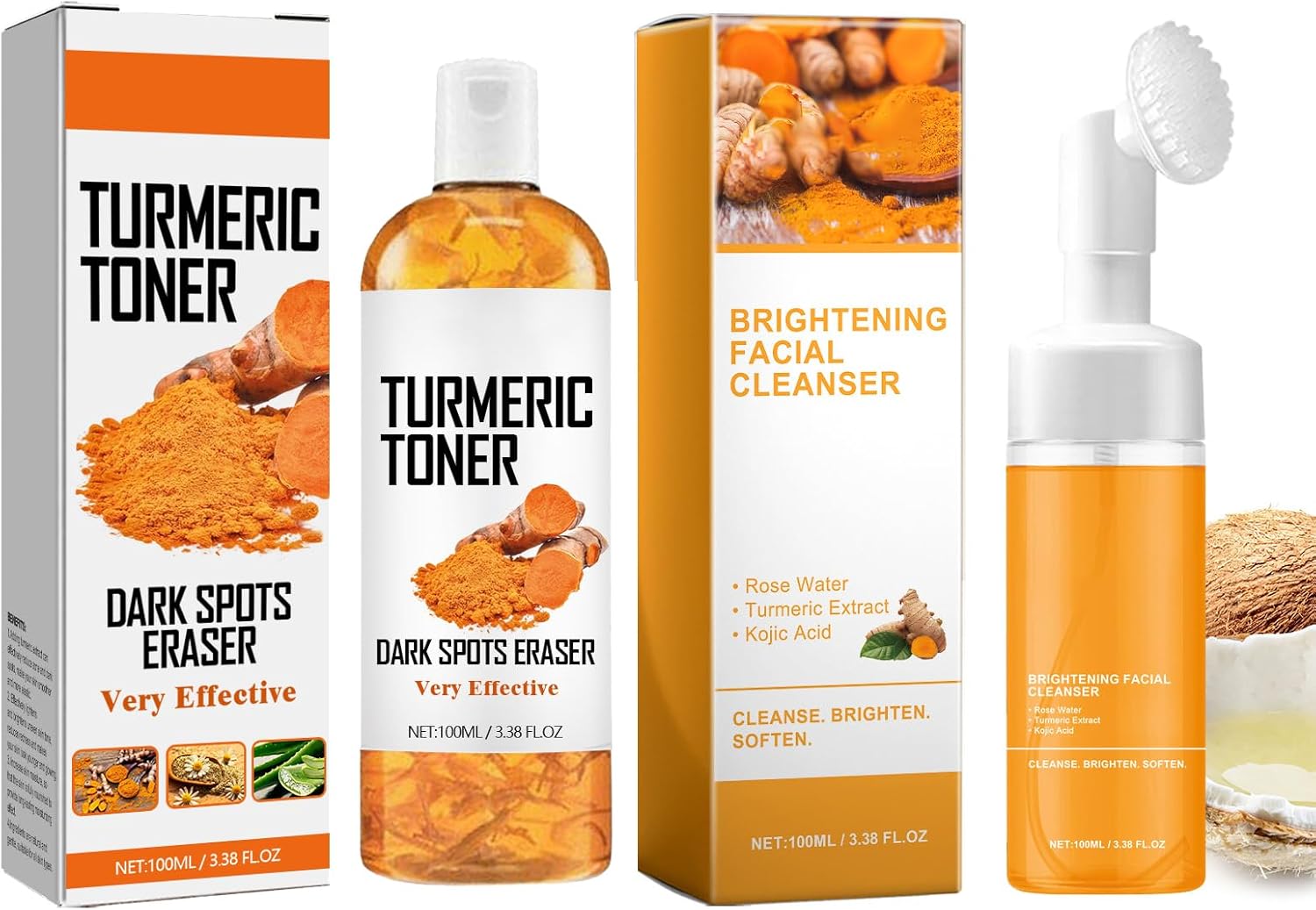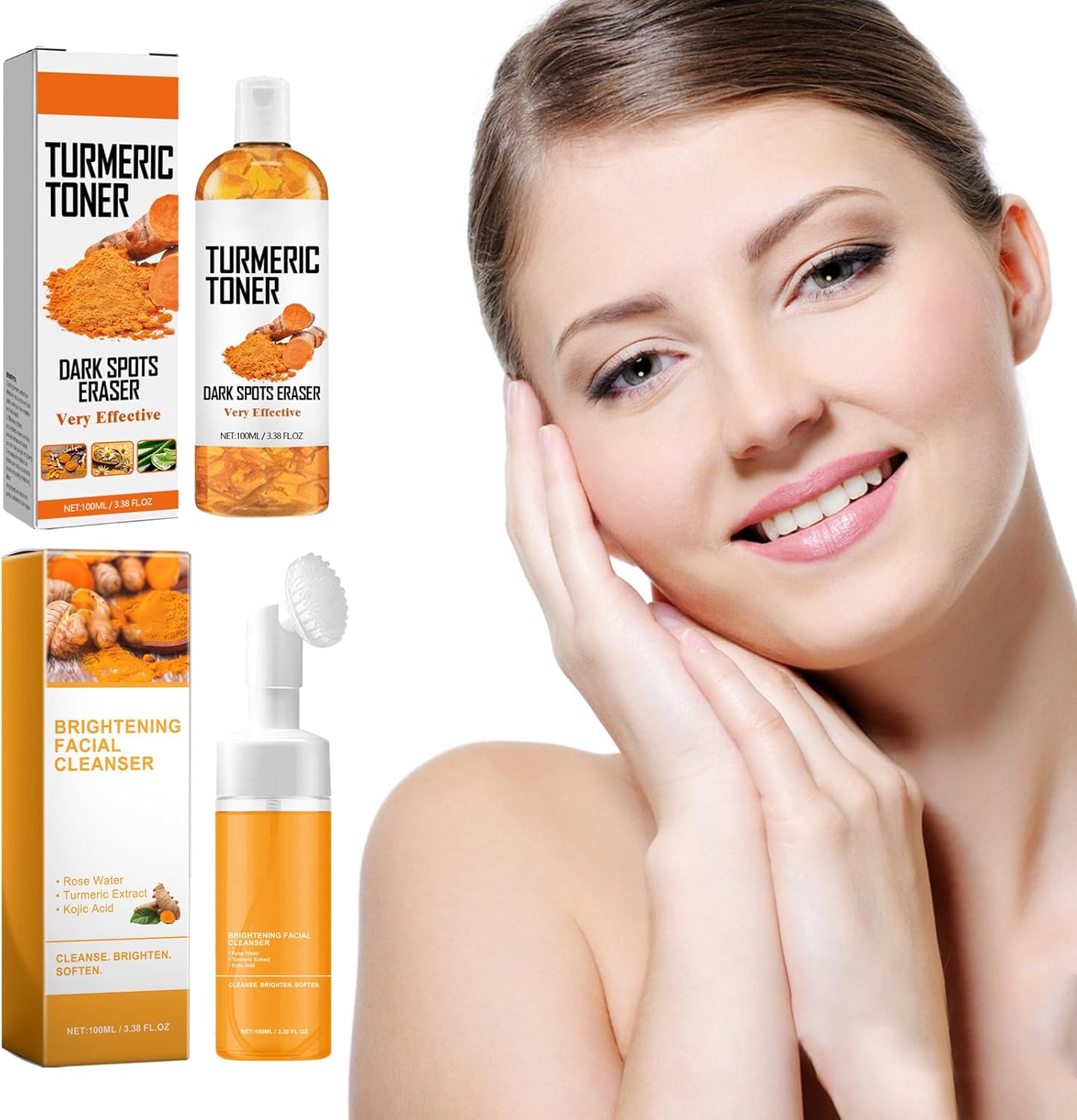 Kurkuma huidverzorgingsset: Intensief hydraterend gezichtswater 100 ml en reinigingsmiddel 100 ml, voor versteviging en hydratatie van de huid en voor het lichter maken en lichter maken van de huid (2