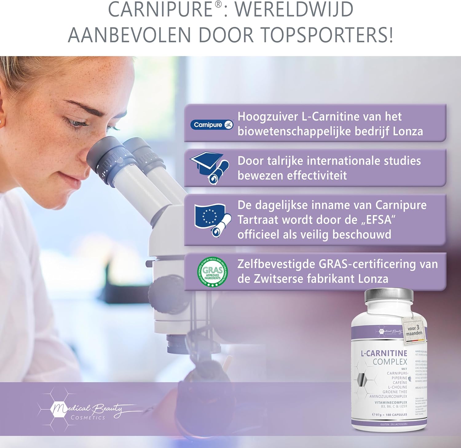 L-Carnitine Complex van Carnipure® – 180 L-Carnitine Capsules – met Groene Thee, Cafeïne en Piperine – Vegan L-Carnitine Capsules hoog gedoseerd voor een normale stofwisseling met Choline.