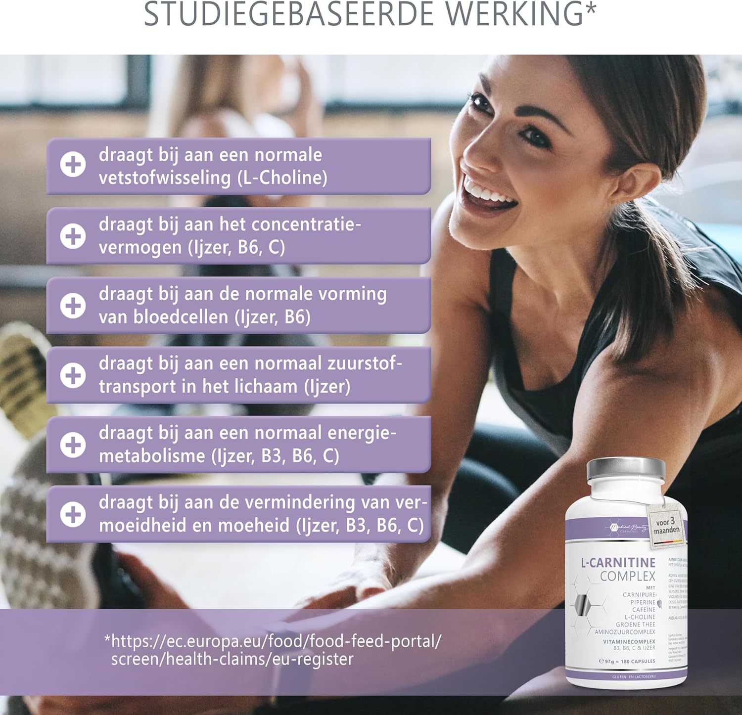 🔥POWER COMPLEX – L-Carnitine is belangrijk voor de energieproductie in de cellen. Groene thee met polyfenolen werkt als antioxidant. L-Carnitine capsules zijn ideaal voor sporters en actieve mensen.