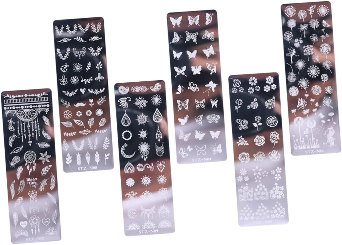 LALAFINA Manicure Kit Nail Stamper Nail Stencils 6Pcs Women Steel Art Plate For Template Florals Nail Stainless Plates Girls Printing Stamping DIY Butterflies Nail Stamper Nail Stencils Nail