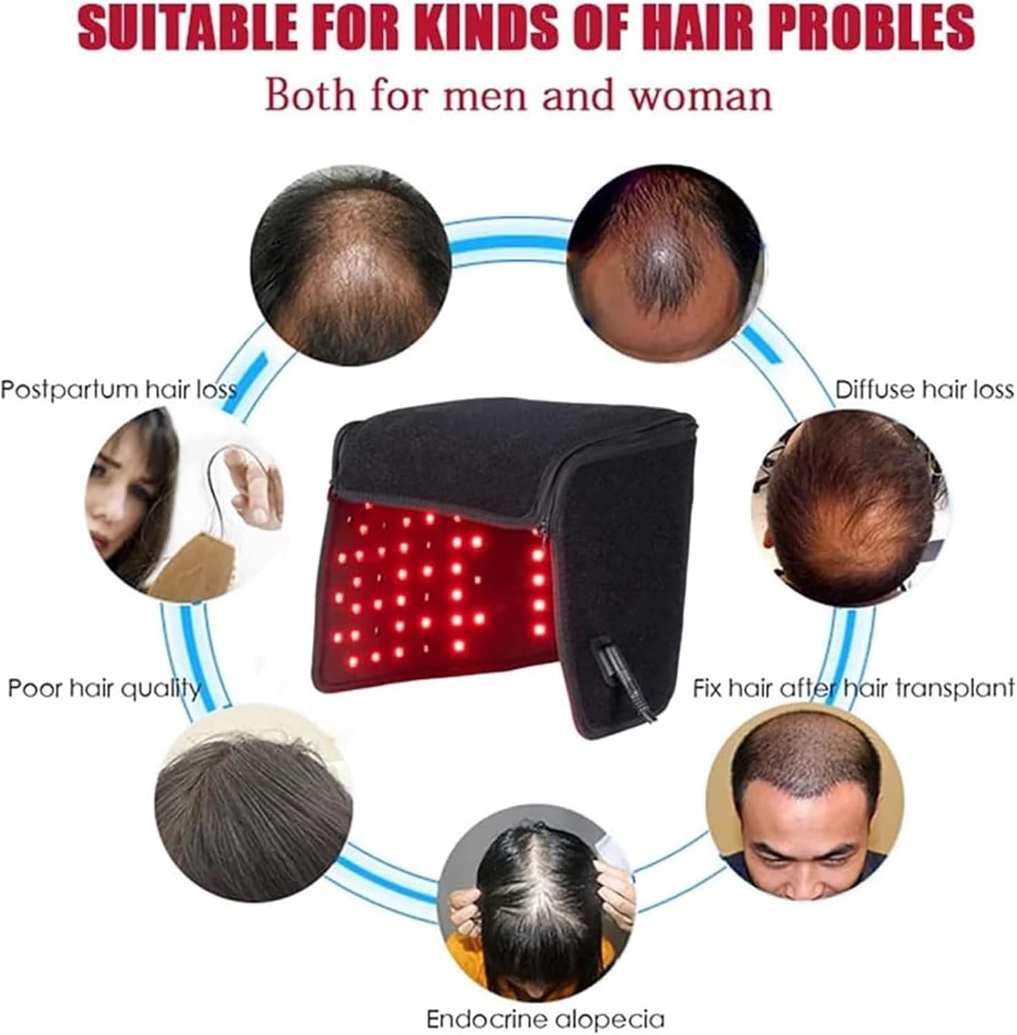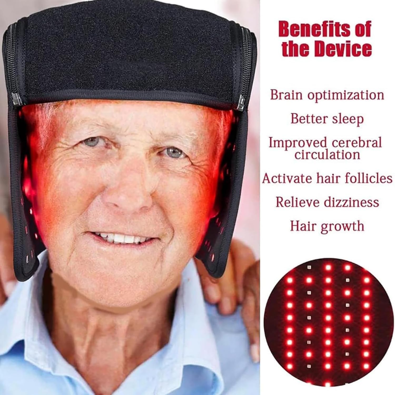 De product-upgrade maakt gebruik van 215 drie-in-1 lampkralen, die bestaan uit drie kleine 650 nm of drie 850 nm lampkralen. (172 rode lichten met 660 nm en 43 infraroodlichten met 850 nm). Het kan de olieafscheiding reguleren, de haarzakjes voeden, de hoofdhuid verzorgen en een goede omgeving voor de haargroei creëren.