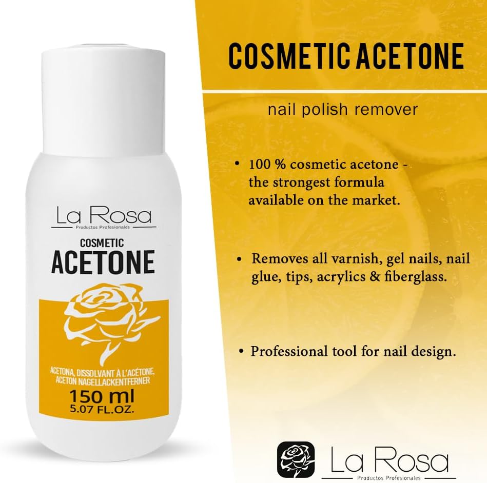 LaRosa COSMETISCHE ACETON 150 ml voor semi-permanente nagels: de sterkste formule met additieven die de nagels en de huid eromheen beschermen, Nagel Verwijderaar, limoengeur
