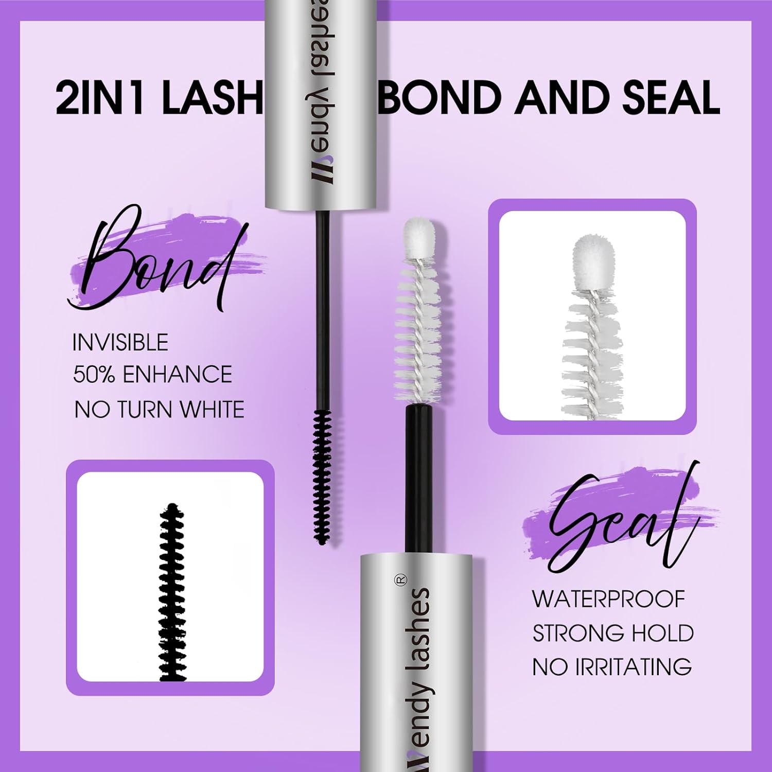 Lash Bond en Seal, Cluster Lashes Lijm Bond en Seal 2 IN 1 voor Cluster Wimper Extensions Zwarte Lash Bond Waterdichte Mascara Wand Sterke Hold 48-72 Uren Wimper Cluster Lijm