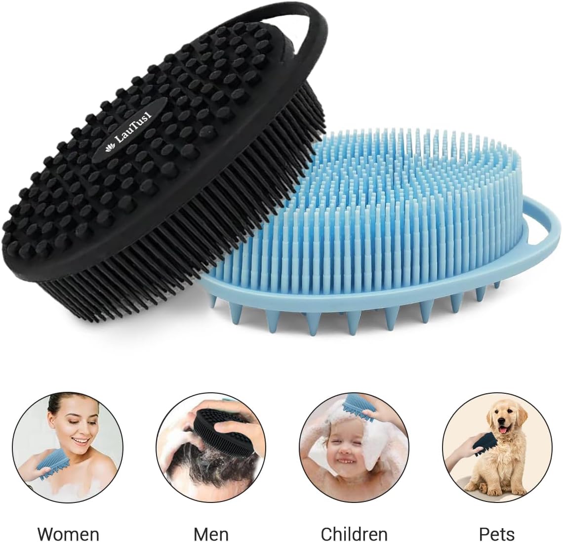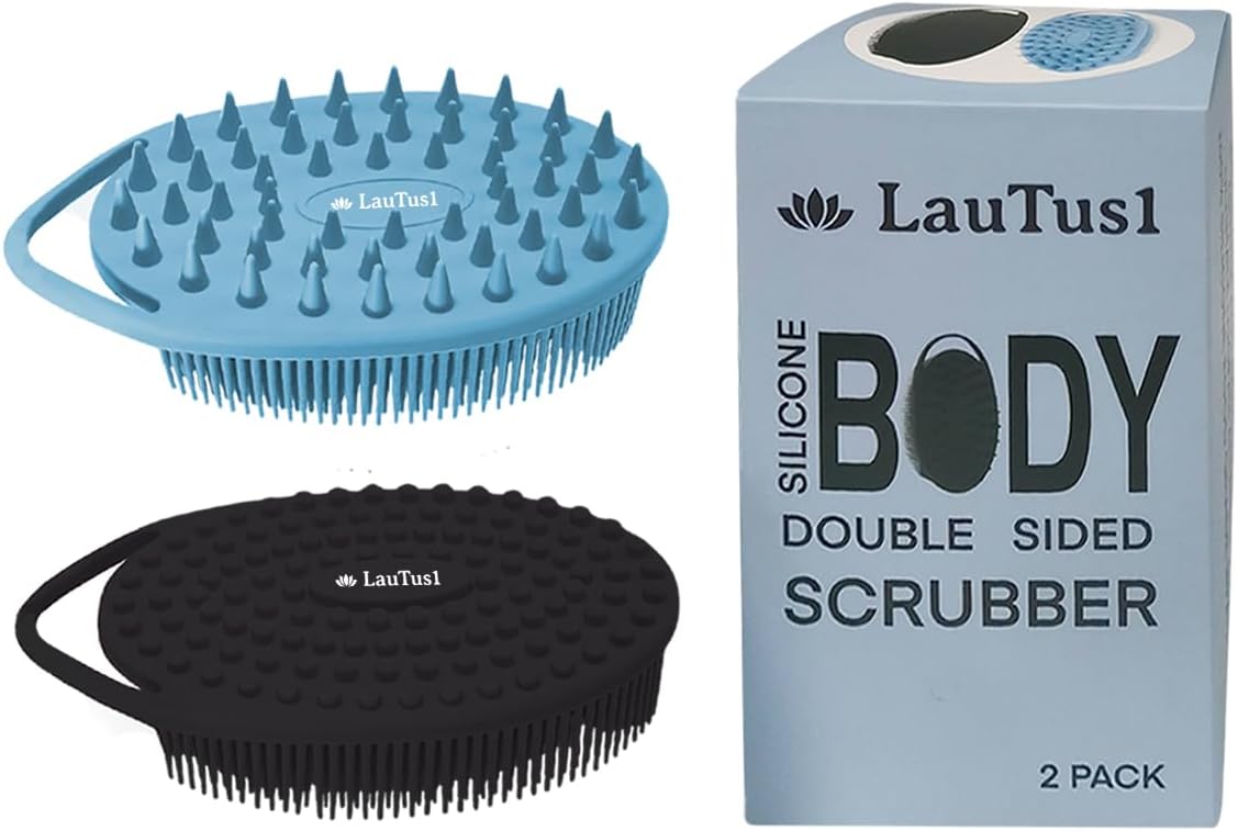 LAUTUS1 2 Packs Siliconen Body Scrubber, Dubbelzijdige Douche Scrubber Haken Exfoliërende Body Scrub Borstel Siliconen Loofah Vrouwen Mannen Diepe Reiniging en Massage Tool Blauw en Zwart
