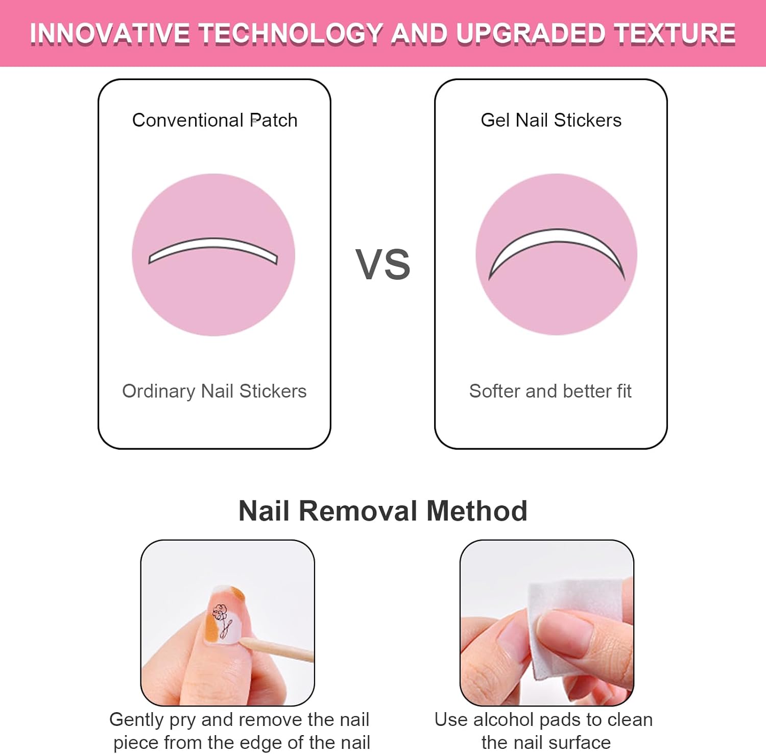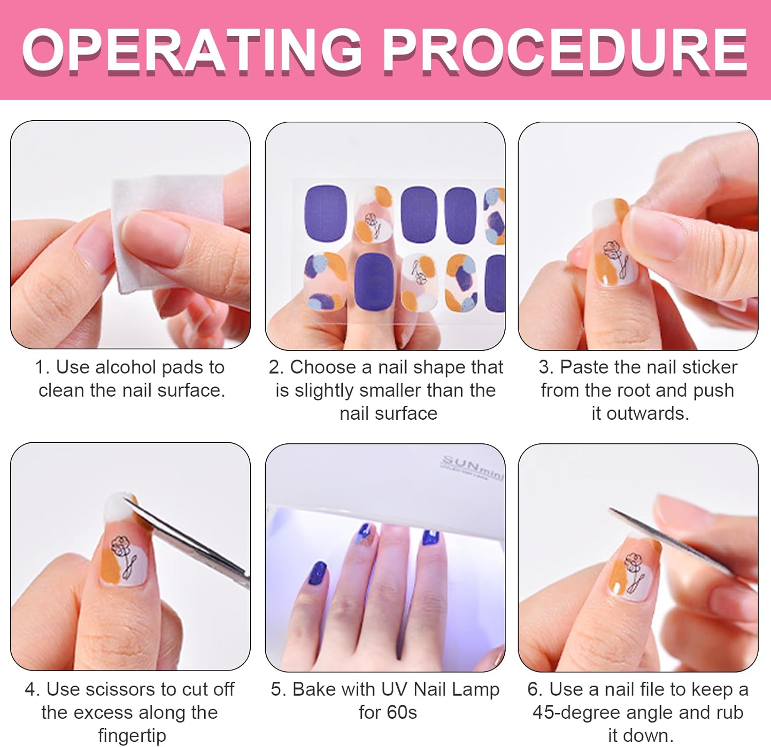 Easy to use, semi-cured gel nails wrap stickers are easy to apply, file and cure by UVS light. you can quickly get salons quality nails art. removal is also quite simple, tear them off with wooden sticks and finger.