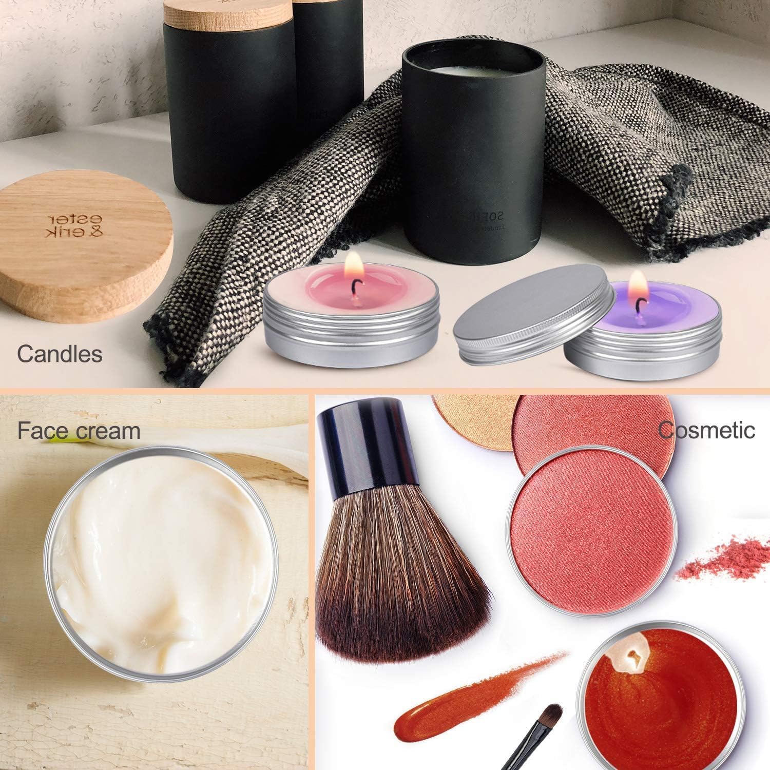 Deze navulbare glazen zijn ideaal voor zelfgemaakte lippenbalsem, nagelkunst, crème. En kan ook worden gebruikt om mini-kaarsen, zalf, sieraden, kunsthandwerk, kruiden, haken, kralen, knopen enz. op te bergen.