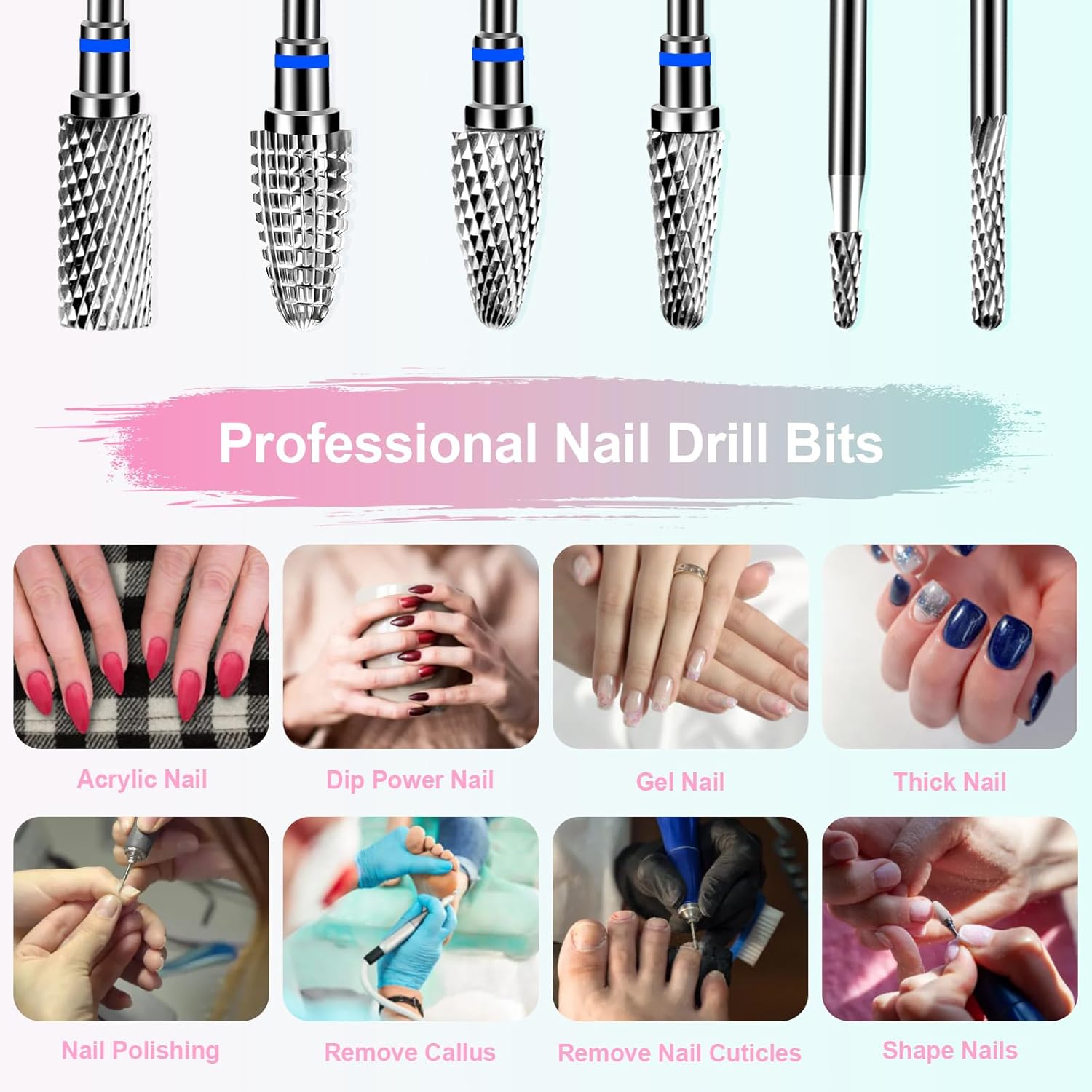 De nagelboorset is geschikt voor nagelstudio’s, schoonheidssalons, manicure of persoonlijke manicure en manicure-beginners. Compleet met 6 verschillende vormen van hardmetalen nagelboren, voldoet deze boorbitset aan alle behoeften van manicure pedicure, duurzaam, corrosiebestendig en veilig te bedienen, manicurenagels en houdt je nagels gezond. 6 stuks nagelboorbits, 3/82 inch diameter van de schacht