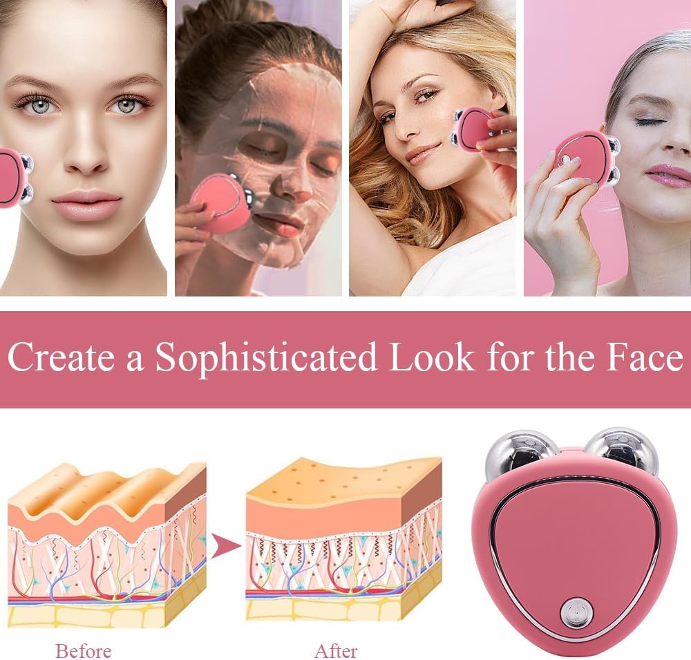 Bevordert de opname van de huid: het gezichtsmassageapparaat is geschikt voor de meeste mensen en kan worden gebruikt met serums of gezichtsolie om effectief te gaan met waterretentie en elasticiteit van de huid, voor een strakkere, gladdere en jeugdige huid.