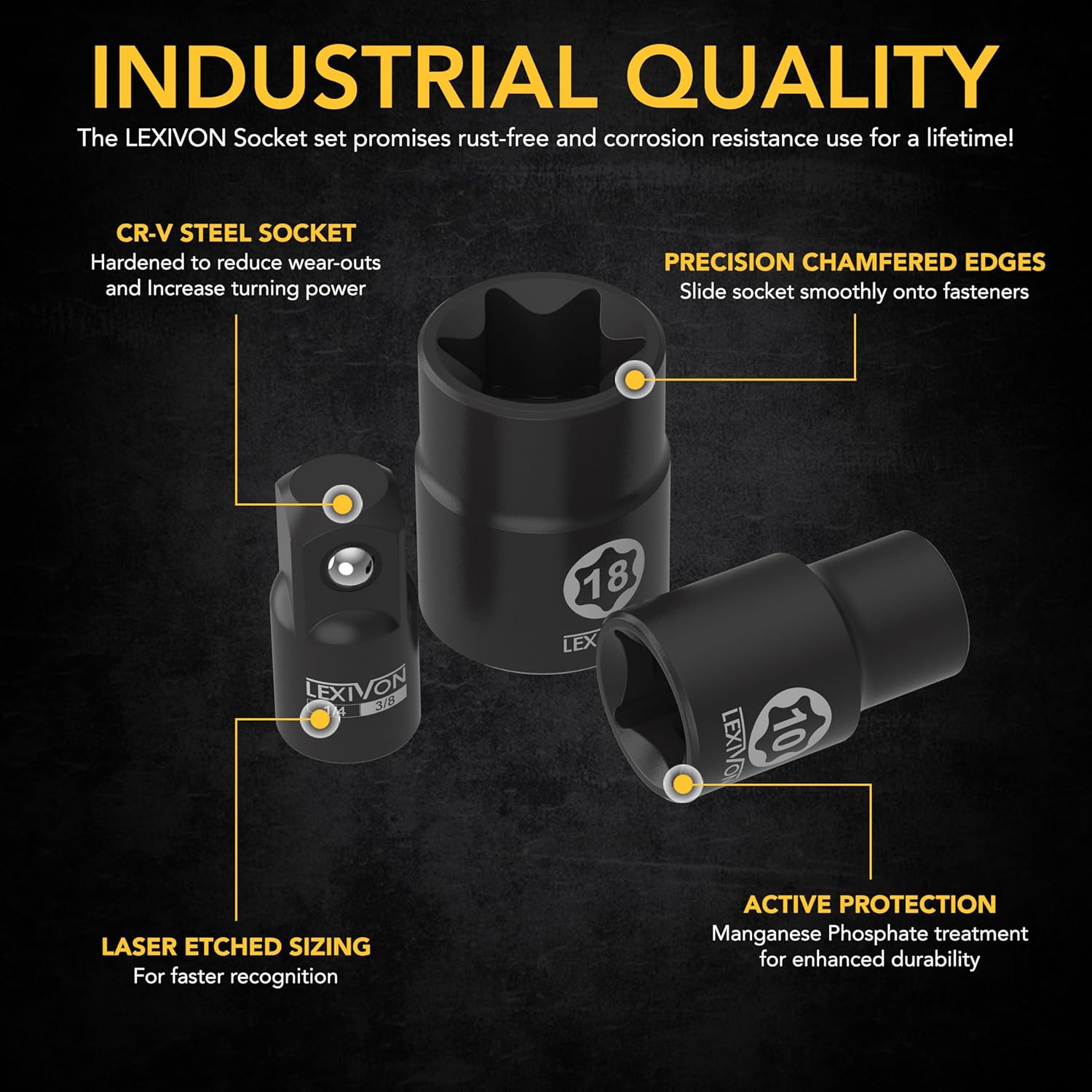 LEXIVON E-TORX Socket Wrench Set, Chrome Vanadium Alloy Steel | 13-Piece Female Star Socket Set E4 – E20 | Enriched Storage Case (LX-147)