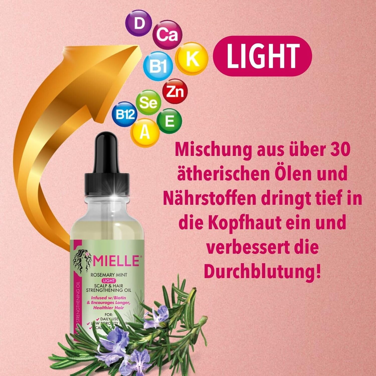 Lichte Rozemarijn & Muntolie P-Beauty met Biotine 1x59ml – voor Haar- en Hoofdhuidverzorging – Haarolie voor Haargroei – Essentiële Olie Hydrateert, Versterkt en Vermindert Haaruitval