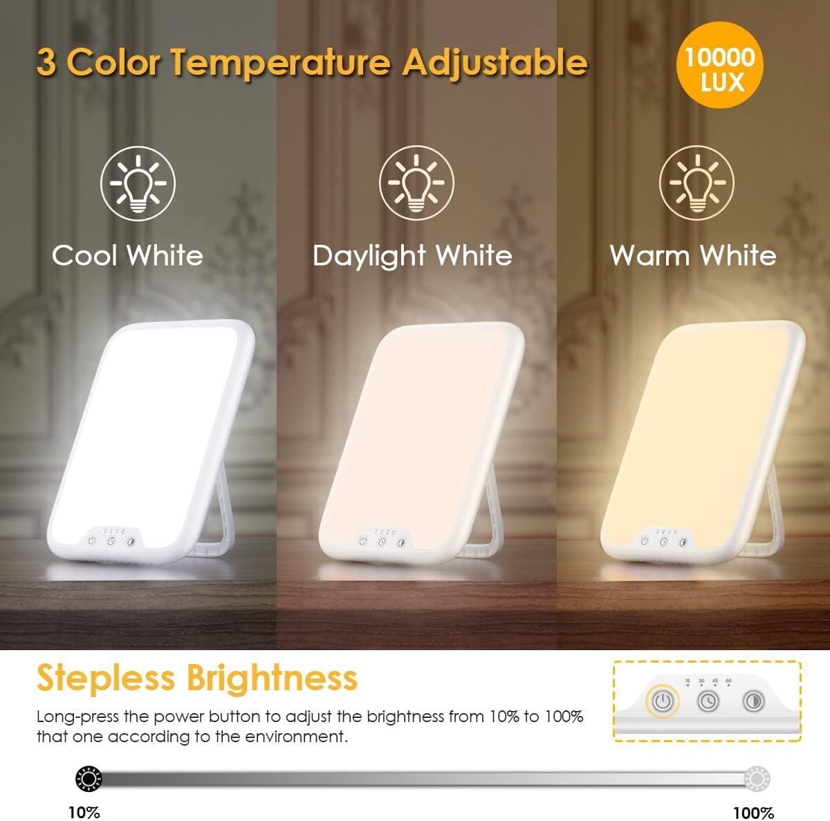 Lichttherapielamp, 10.000 Lux fototherapielamp met geheugenfunctie en 4 timer, 3 kleurtemperaturen, daglamp, helderheid, traploos verstelbaar, voor kantoor/thuis