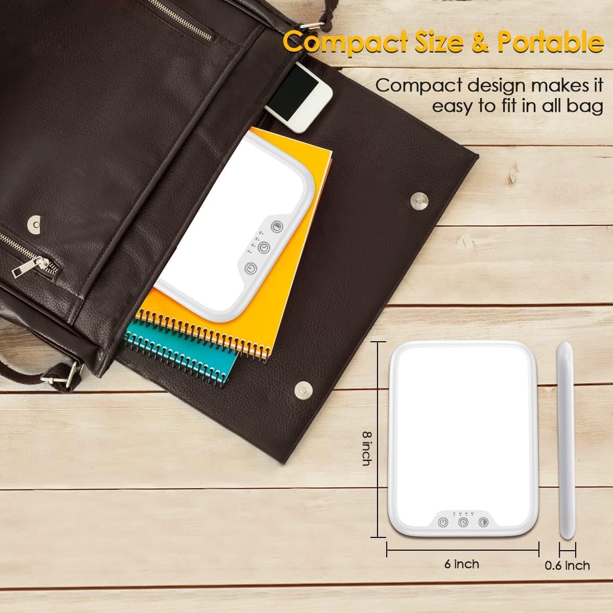 🛍️ ContenidoIncluye una lámpara de fototerapia, un cable de carga tipo C de 1,5 m, un adaptador y un manual de usuario. Este producto está diseñado para fototerapia, especialmente durante los meses de invierno, cuando la luz solar escasea. Ayuda a mejorar el estado de ánimo, la concentración y la energía.📋Especificaciones- Color: Blanco- Peso: 470 gramos- Material: ABS y Policarbonato- Dimensiones: 15.2 x 1.6 x 20.2cm- Brillo: 10000 Lux✅ Pros- Fácil manejo- Luz muy cálida y agradable con una difusión adecuada.- Gran potencia como para un cuerpo tan compacto .- Crea un estado de ánimo positivo.- Carcasa compacta.❌ Contras- No tiene batería incorporada, lo que es una desventaja para un dispositivo de este tipo.- Falta de pies de goma, lo que hace que el dispositivo resbale sobre una superficie lisa al pulsar los botones.- El puerto USB no está muy bien situado.📝 ConclusiónLa lámpara me ha sorprendido gratamente, tiene un tamaño compacto, se pliega cómodamente y no ocupa mucho espacio. En cuanto a las funciones de terapia de luz, la luz es brillante y agradable, los controles son convenientes, fáciles de usar, no tuve que leer el manual. Con la función de temporizador, casi nunca uso el botón de encendido para apagarlo. El cuerpo está hecho de plástico cualitativamente, USB Tipo-C para la alimentación es conveniente, se adapta a cualquier cable. Por supuesto, hay defectos, como la falta de pies antideslizantes y una batería integrada. La lámpara es conveniente de usar, incluso será adecuado para un regalo.