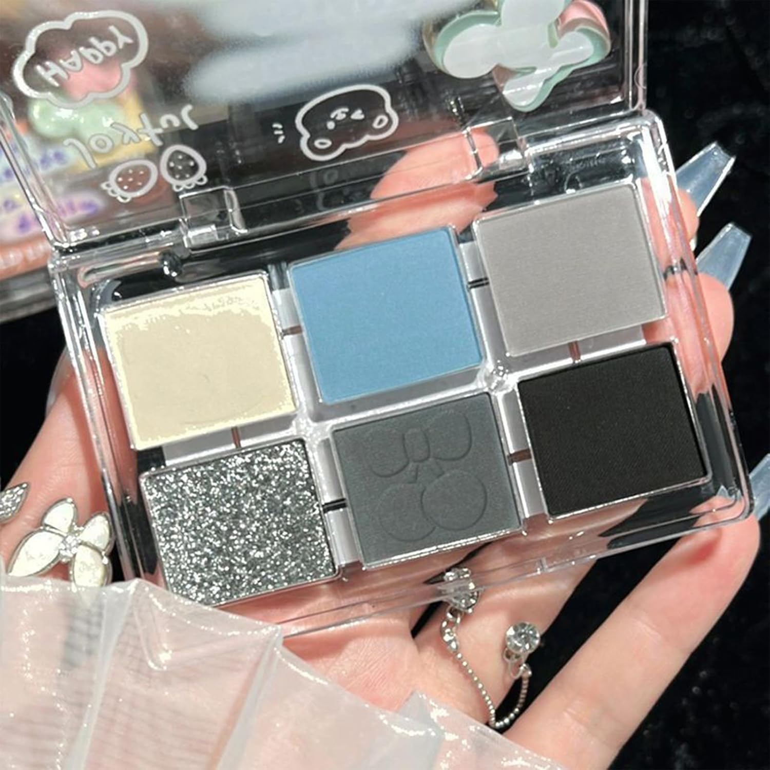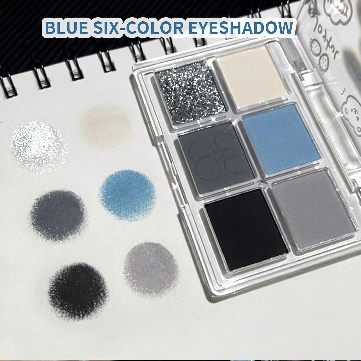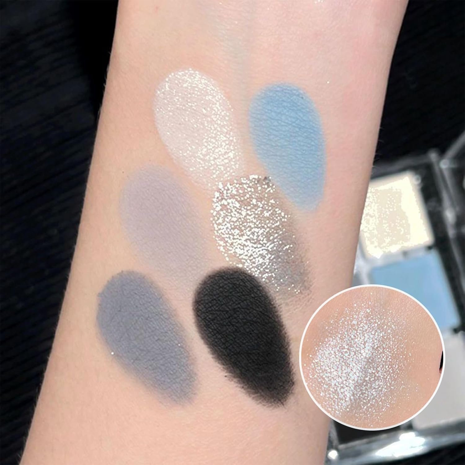 Lilbitty Pack of 6 Colours Glitter Eyeshadow Palette, Waterproof Pigmented Eye Makeup, Palette in Black, Blue, Silver, Long-lasting Eyeshadow for Women and Girls