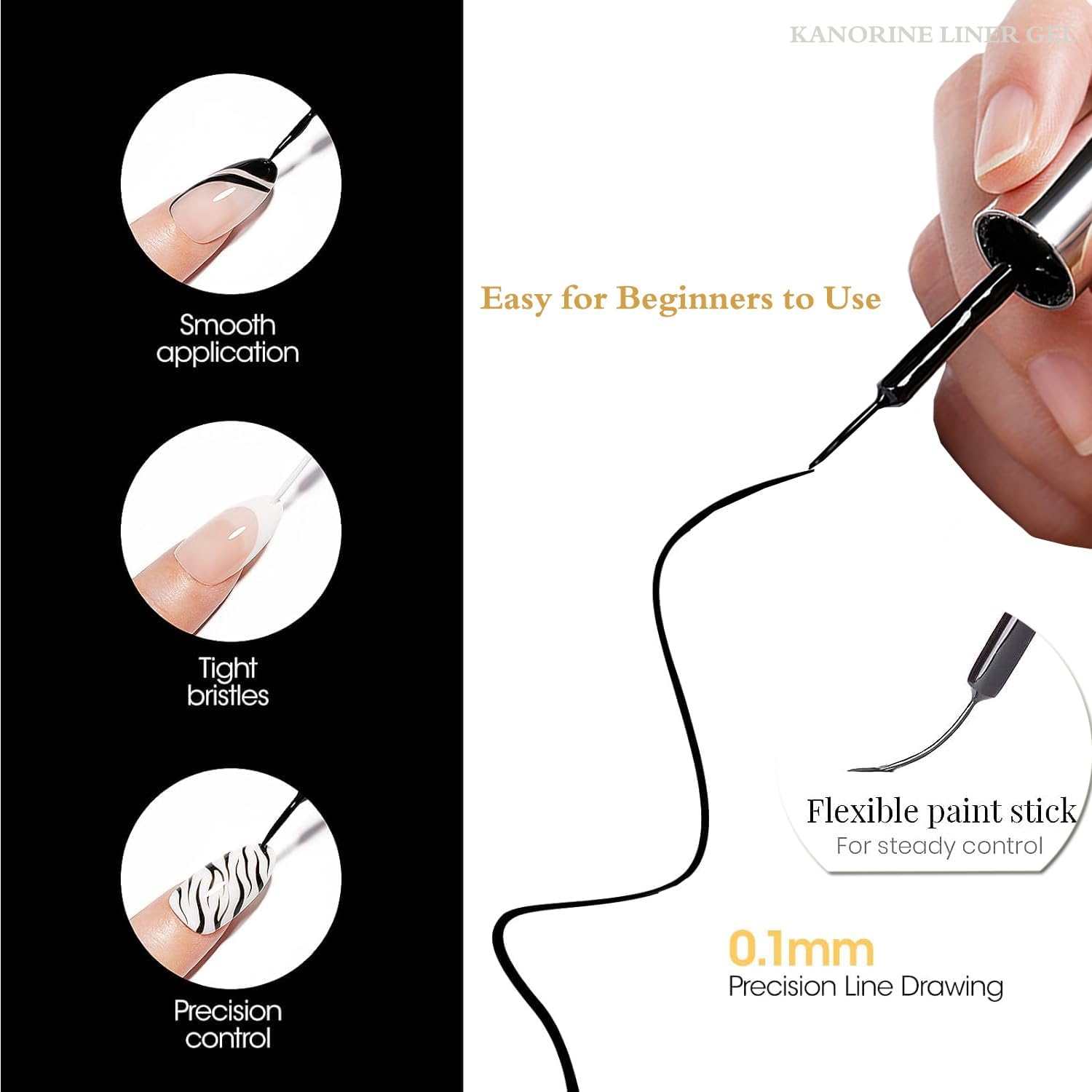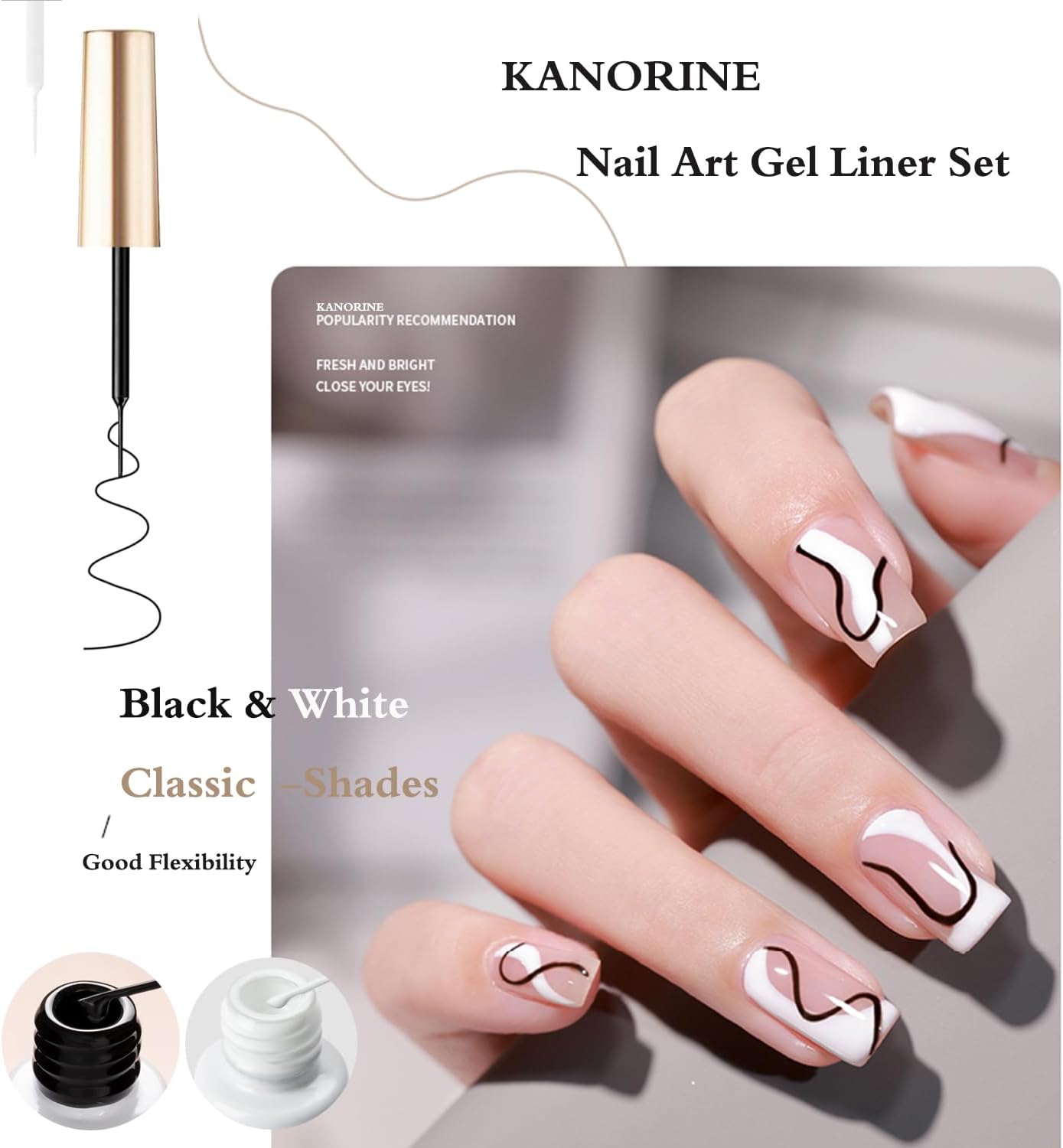 KANORINE Swirl Nail Art Gel Polish: Perfect voor die trendy kronkelende lijnen bstrin-schilderen die nu zo populair zijn… werkt ook perfect voor het toevoegen van een Franse lijn! Met de ingebouwde dunne borstels hoef je je penselen niet tevoorschijn te halen om details en lijnen toe te voegen.