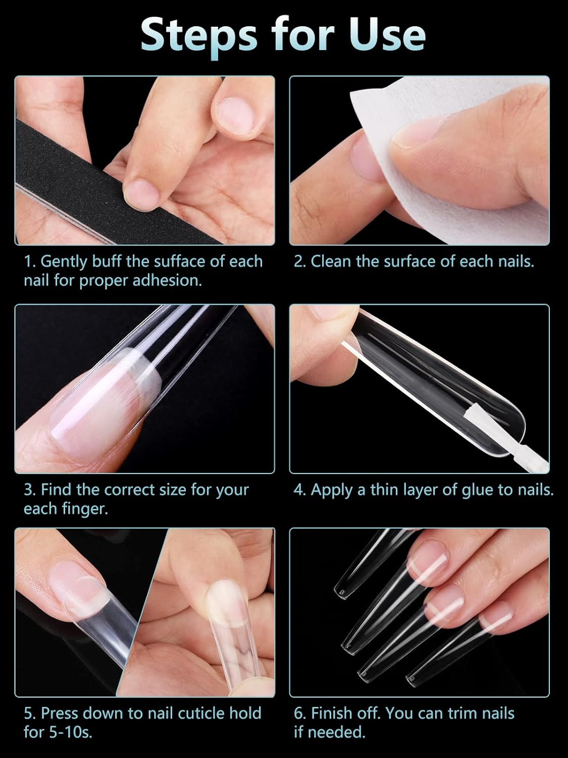 ✨Easy to Trim & Apply: Great clear cover that easy to press on nail beds tightly without feeling tightness. Can be used with nail polish, gel, acrylic powder, keep the color bright without separation or exposure, easily get natural nail effects.