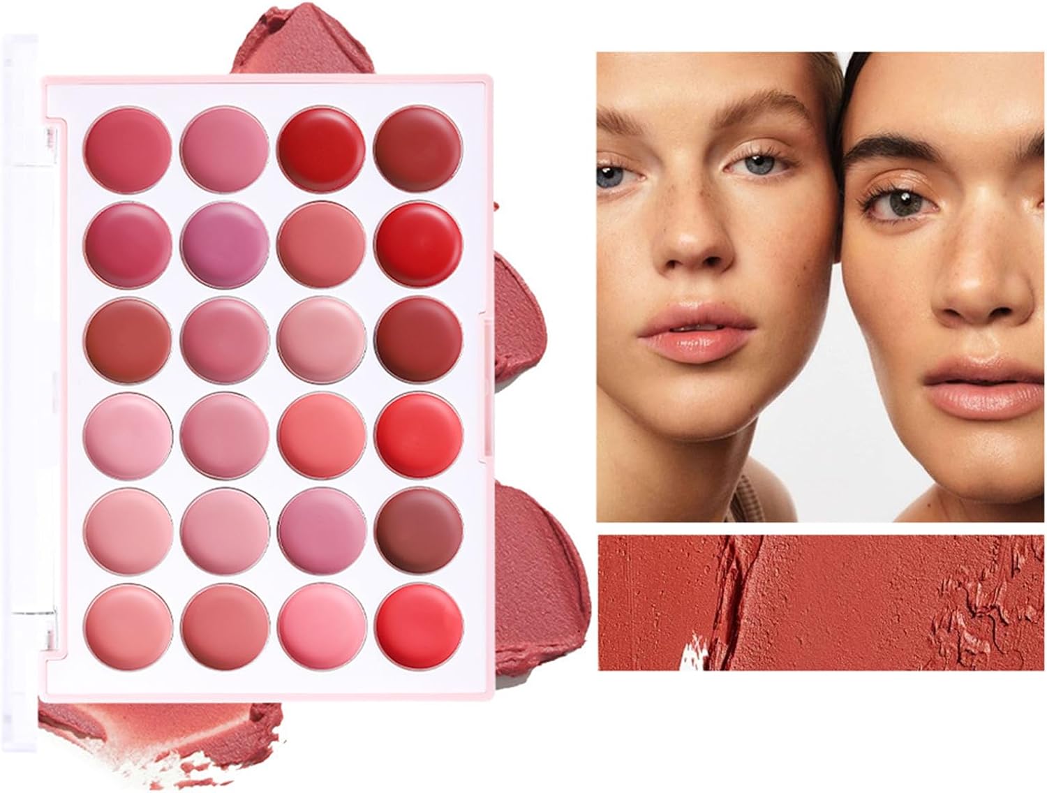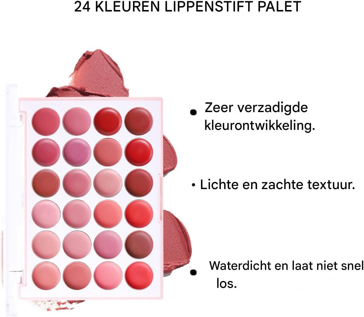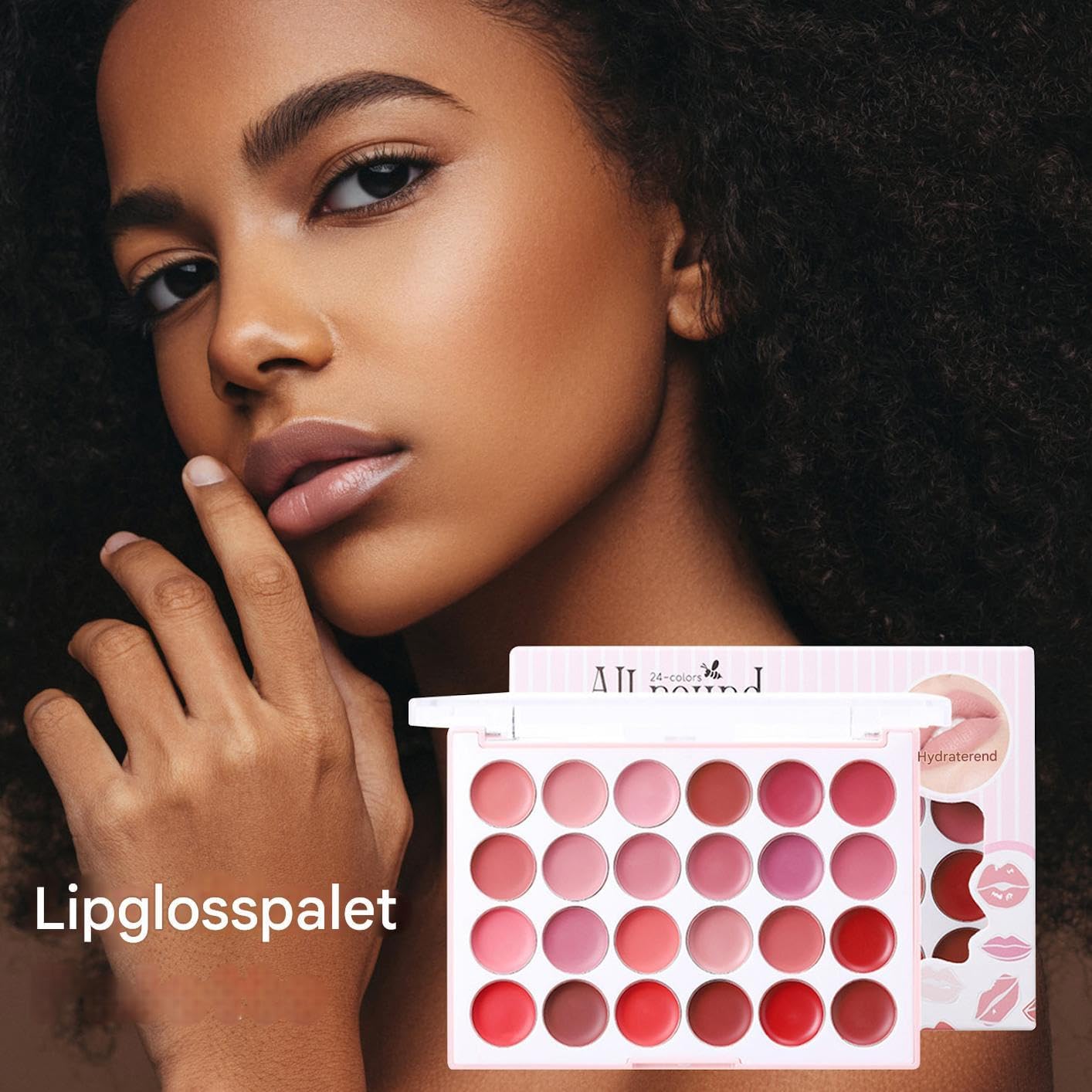 Lip Gloss Palet for Women, Lip Color Palette – Matte lipkleur,Langdurige lipgloss voor buitenreizen, 24-kleuren draagbare hydraterende lippenstiftplaat