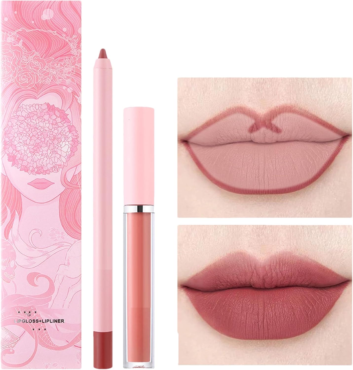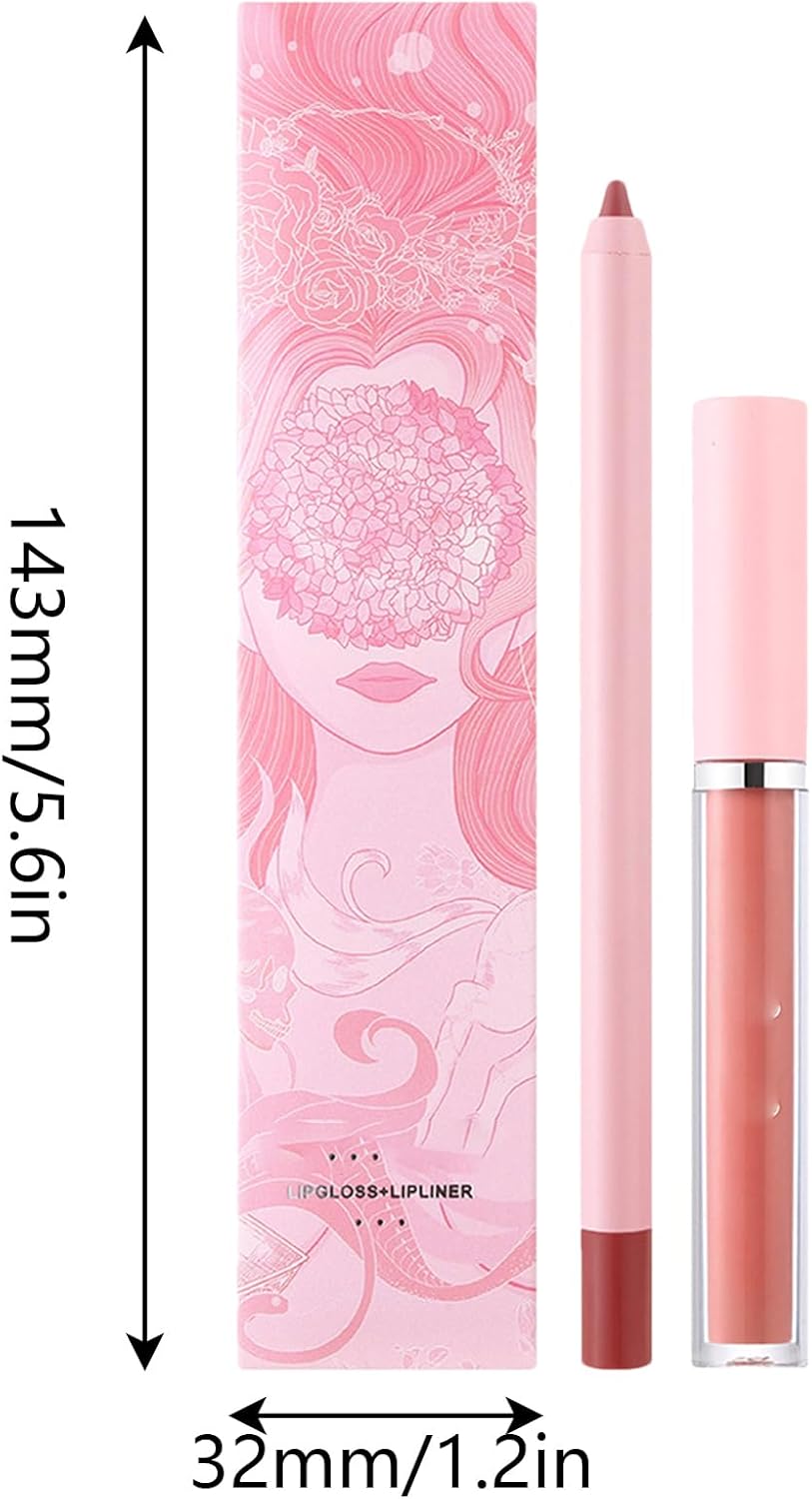Lip Pencil And Lipstick Set,Long Lasting Matte Liquid Lipstick and Lip Liner Set – Glitter Lip Kit Non-stick Cup Professional Lip Makeup Gift Kit for