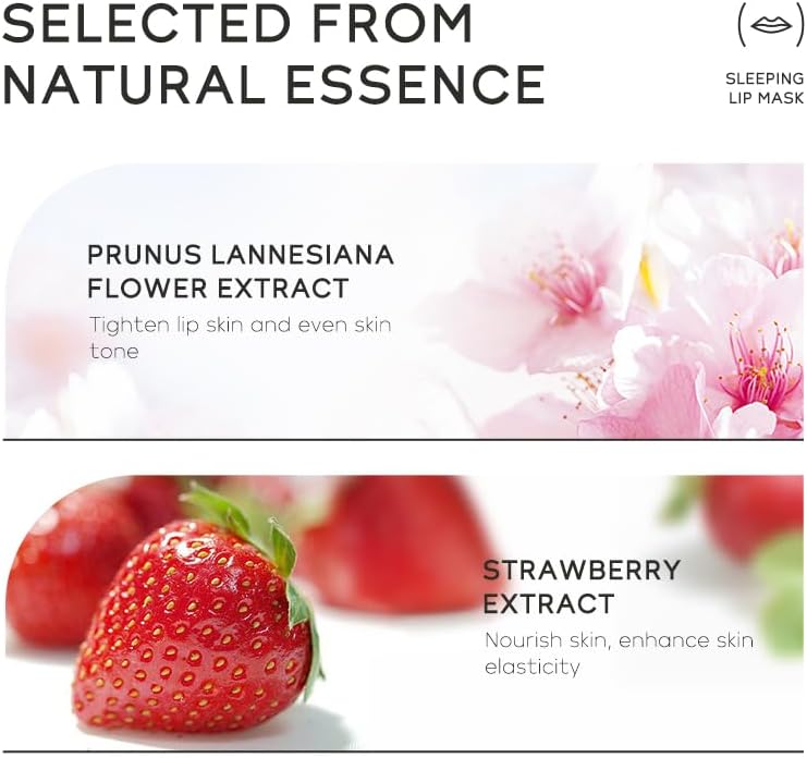 Inhoud levering: 1 x aardbeien-lippenverzorging (15 g), 1 x Sakura lippenverzorging (15 g), ideaal voor vrouwen en tieners van alle leeftijden en voor iedereen die van hoogwaardige cosmetica houdt