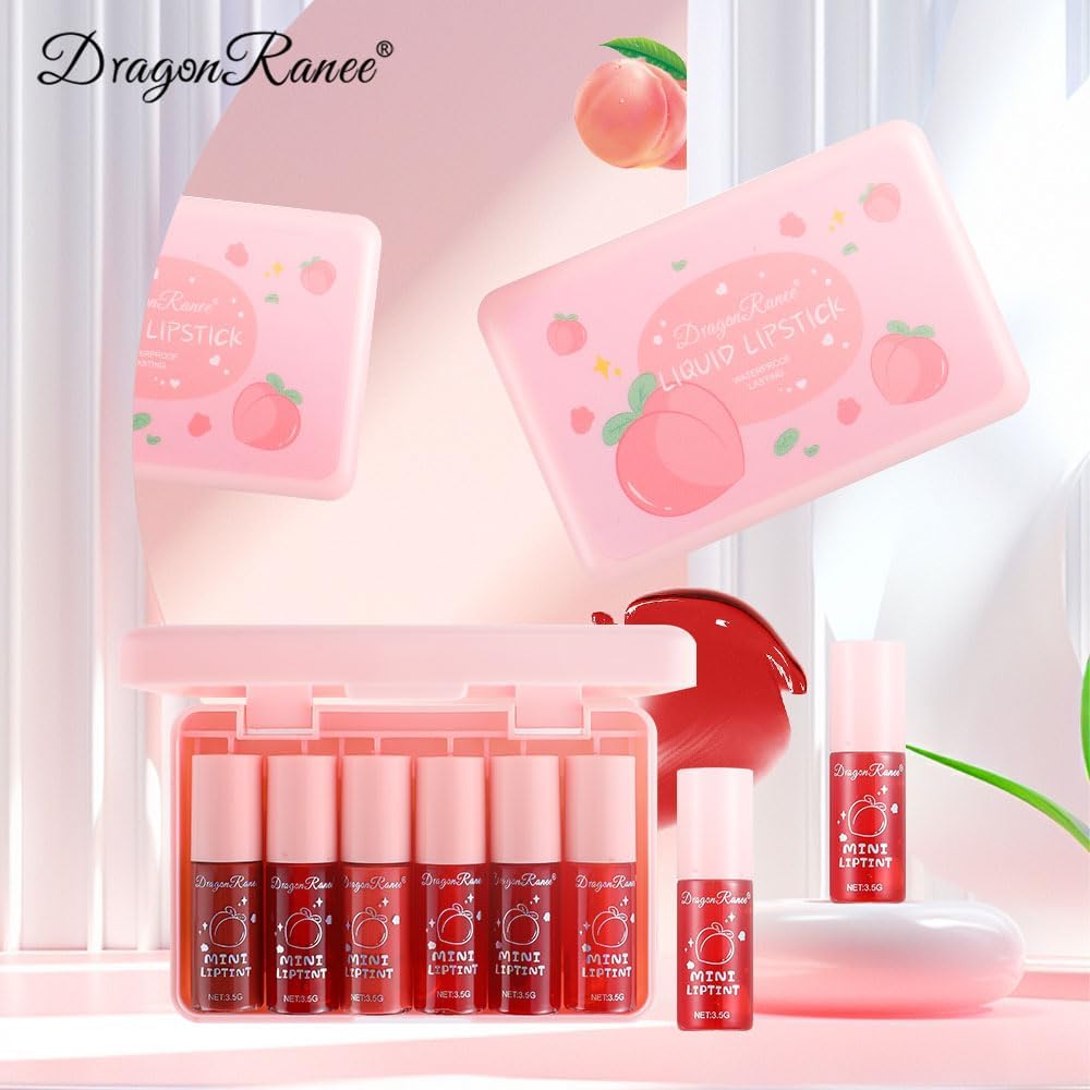 Lip Tint Stain Set, 6 kleuren Mini Liquid Lipstick Langdurig houdbare lippenkleur, waterdichte transferbestendige tint, multifunctionele lip- & wangverf, Koreaanse non-stick cup lipgloss