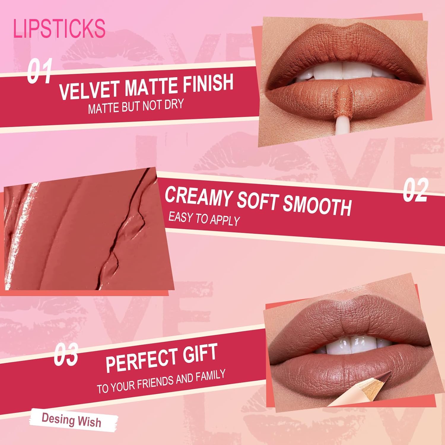Vanwege de verschillende kleurinstellingen van elke monitor kan de werkelijke kleur van de lippenstift licht afwijken.