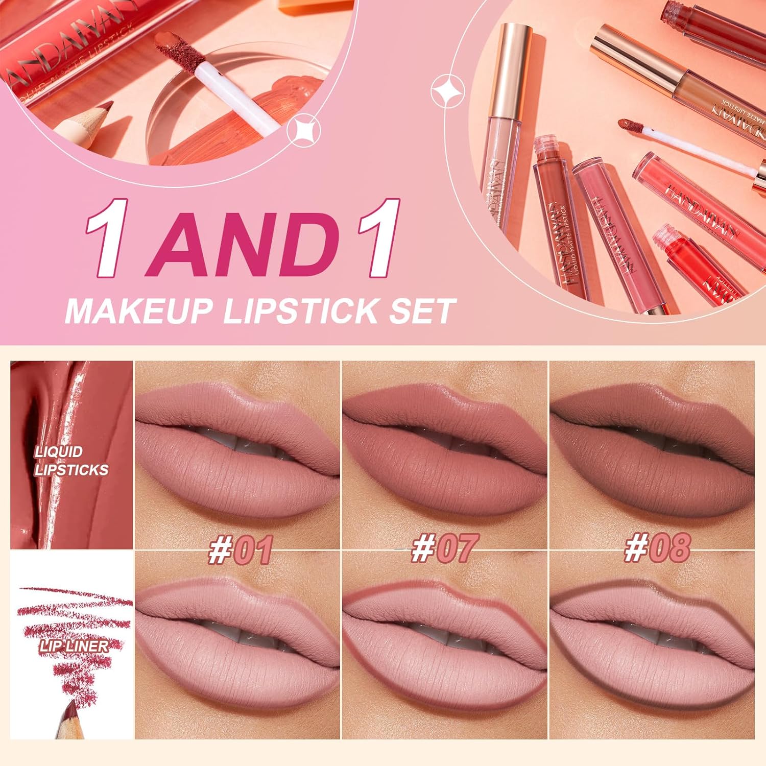 De lipliner kan nauwkeurig op de lippen worden aangebracht en de matte, vloeibare lipgloss heeft een fluweelachtige textuur, is zijdeachtig en licht en is geschikt voor elke gelegenheid, van dagelijkse make-up tot sterke make-up voor een perfecte look voor de hele dag, ideaal als cadeaukeuze voor meisjes.