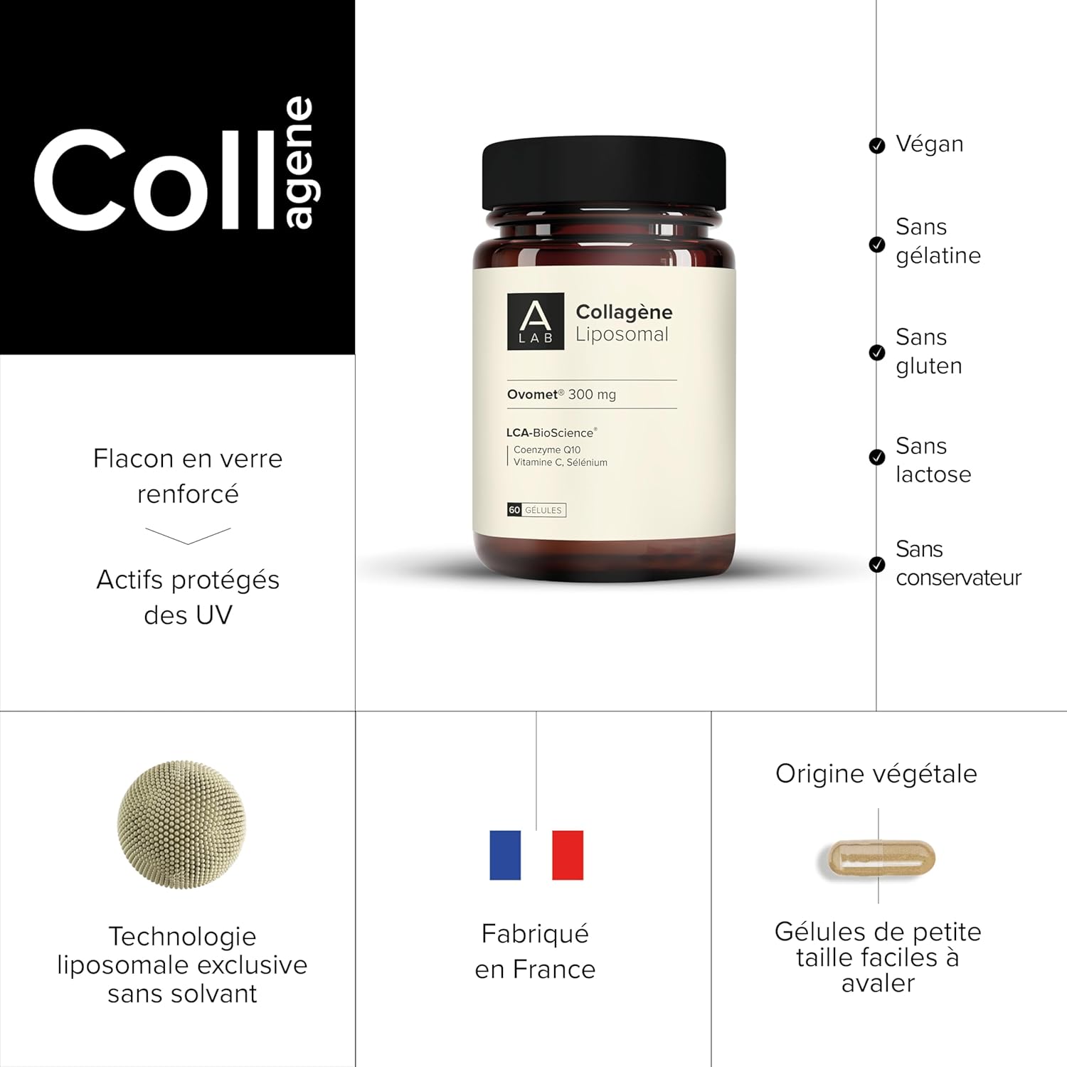 Liposomaal collageen 300 mg – versterkte assimilatie – voedingssupplement tegen veroudering, hydratatie, gewrichten – 15 tot 30 dagen, gemaakt in Frankrijk
