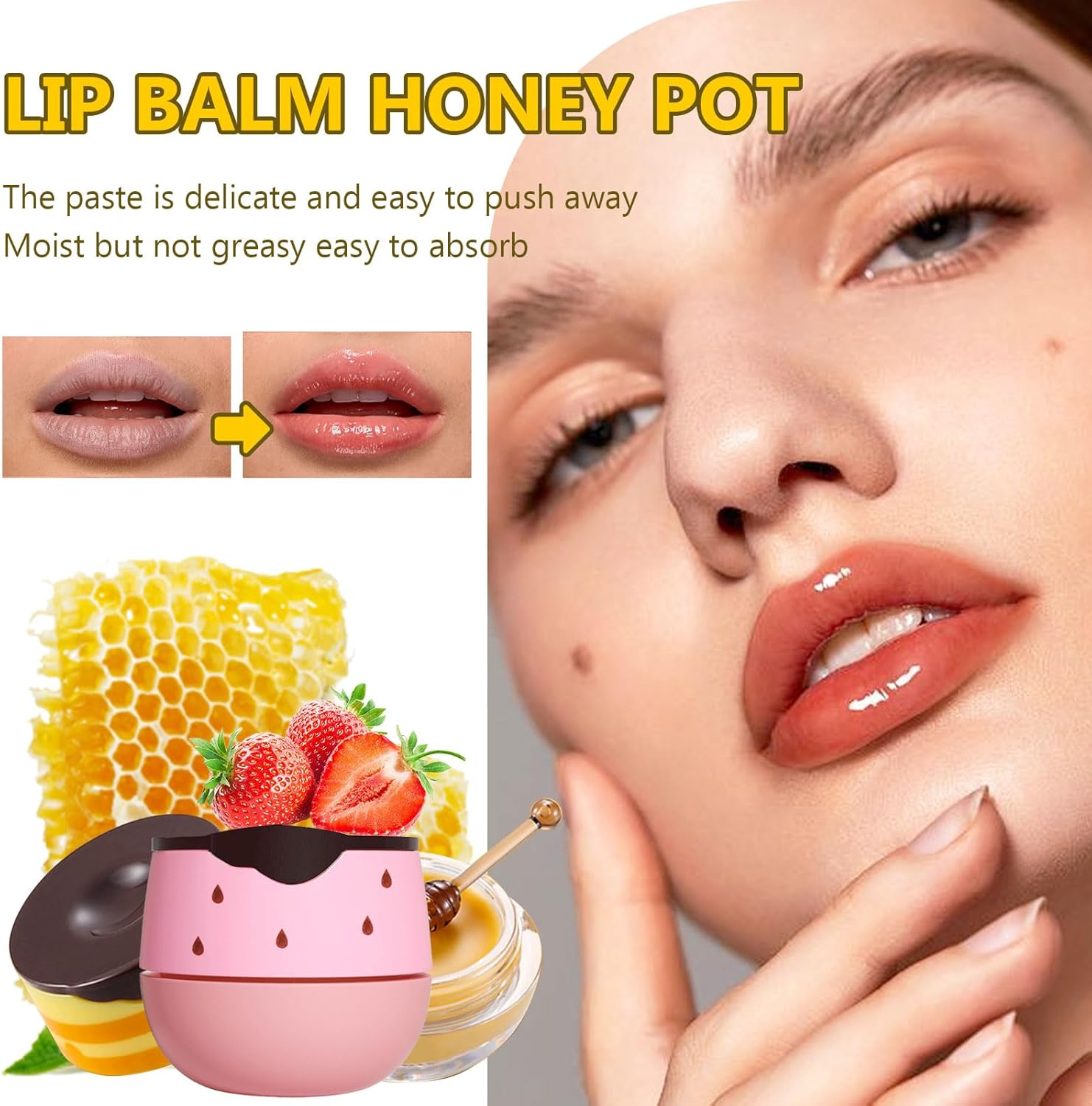 This is a review of ‘2Pcs Honey+Strawberry Bee Balm Lip Mask Set, Propolis Lip Care Cream Moisturizer Lip Mask with Lip Brush, Reduce Lip Lines & Wrinkle Lip, Hydrating Prevention Dry and Cracked Lip Scrubs Exfoliator’. I don’t know why it says scrub/exfoliator in the description as these are lip balms. The honey balm is moisturizing and can be used in a thick layer as a lip mask for overnight. The pot is made of hard plastic and is quite cute, it even comes with a honey spoon in the lid to apply it with (although you can also use your fingers). Overall I feel it’s a nice product that moisturises well.