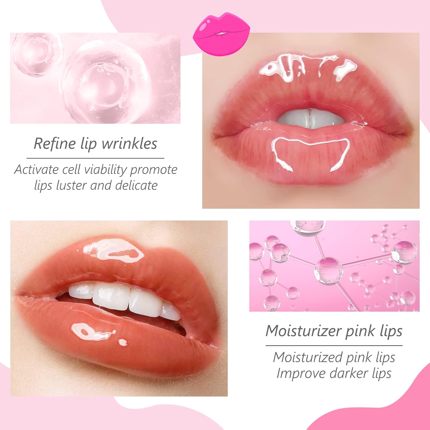 2de Bevochtig de huid van de lippen, maak de lippen zacht en delicaat, vul het benodigde water op.