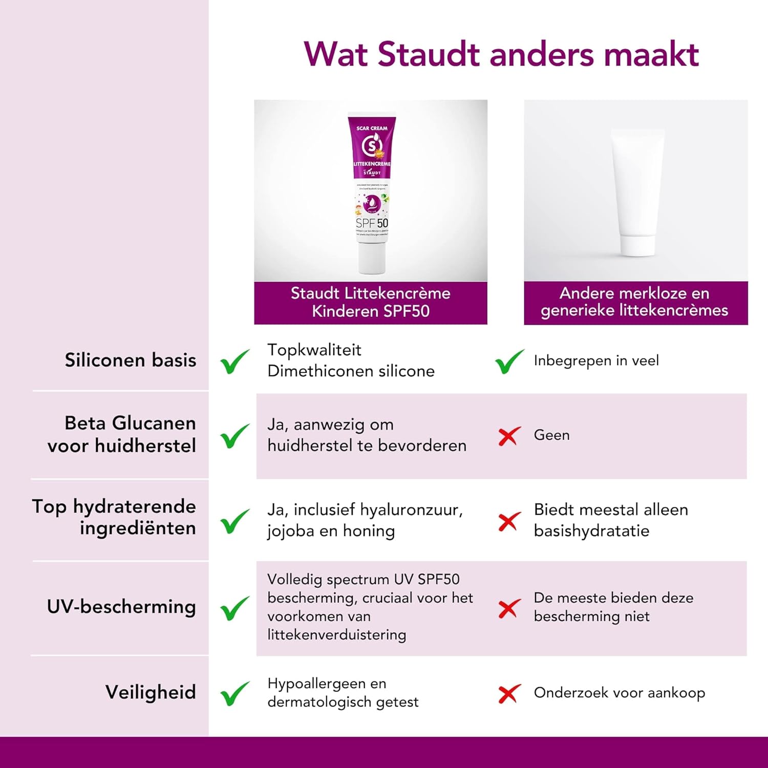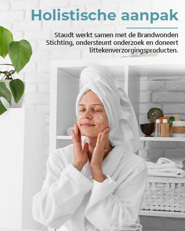Bij Staudt bieden we effectieve oplossingen voor beschadigde huid. Onze premium litteken- en handcrèmes, ontwikkeld door plastisch chirurgen in een toonaangevend brandwondencentrum, hebben een gebruikerstevredenheid van 90%+. We steunen de Nederlandse Brandwonden Stichting, bevorderen onderzoek en doneren producten aan brandwondpatiënten.