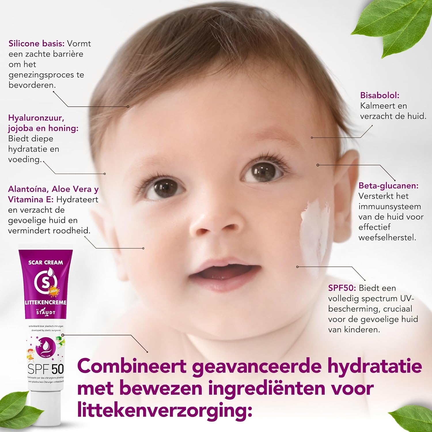 Tenemos una crema ideal para el cuidado de cicatrices en la piel de los pequeños, su formula de gel de silicona con ingredientes hidratantes como la alantonia y el aloe vera.La protección SPF50 proporciona seguridad contra los rayos UV, previniendo las manchas.Su textura es ligera y de rapida absorción y no irrita la piel.Idel para tener en casa.
