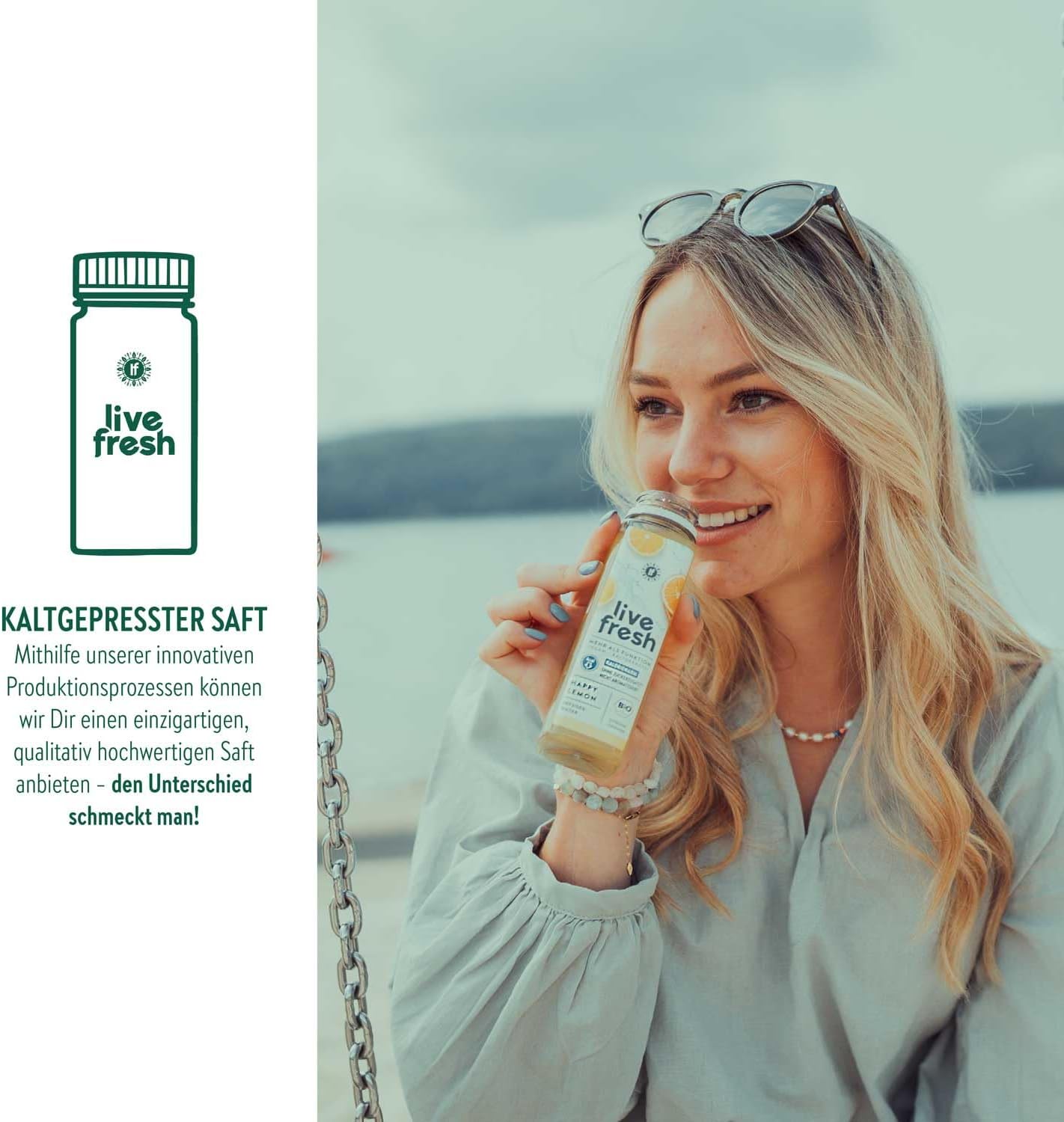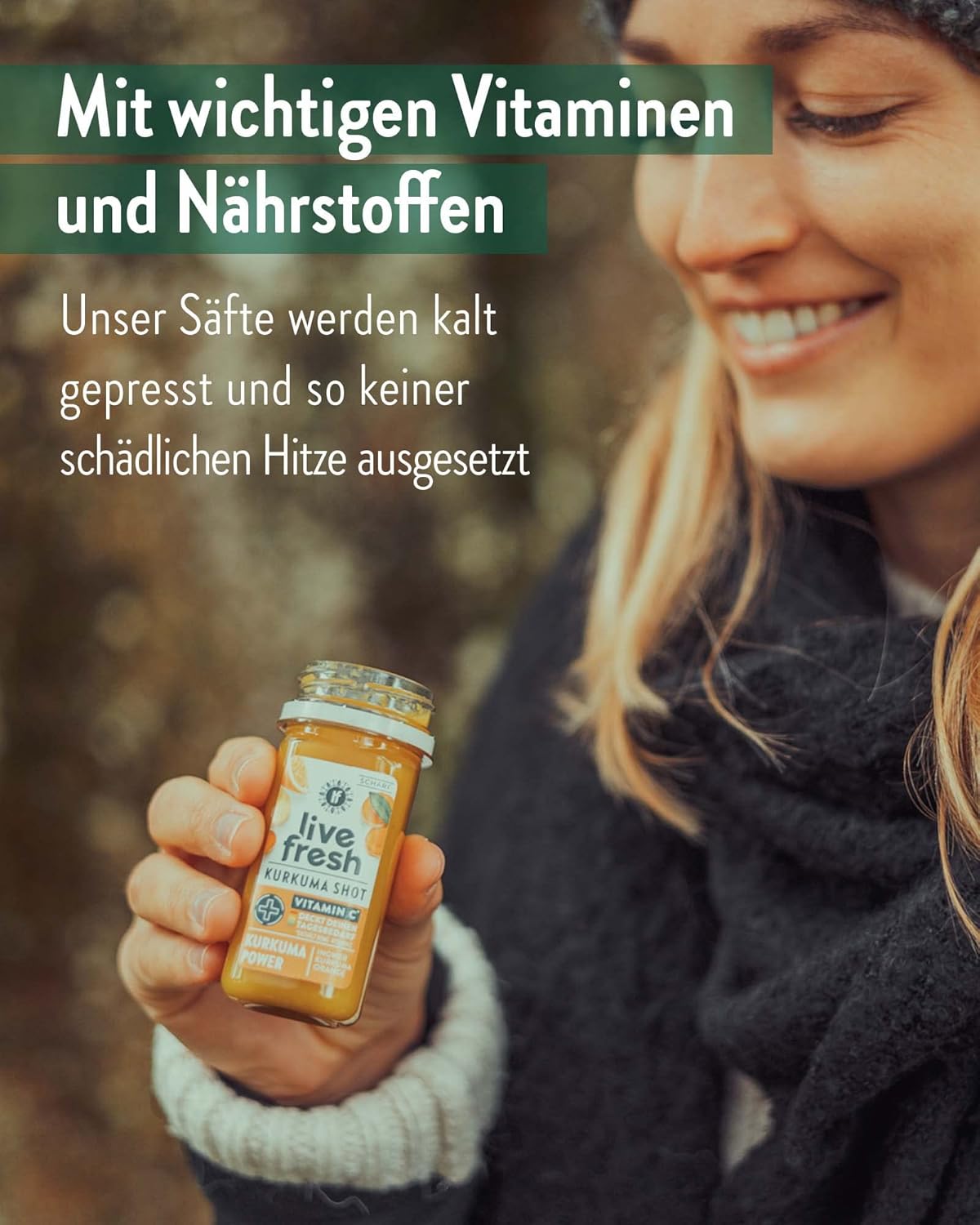 LiveFresh® Kurkuma Power, gembershot van kurkuma, gember, sinaasappel en citroen, met vitamine C, natuurlijk en koudgeperst, 100% natuurlijk, 8 x 60 ml