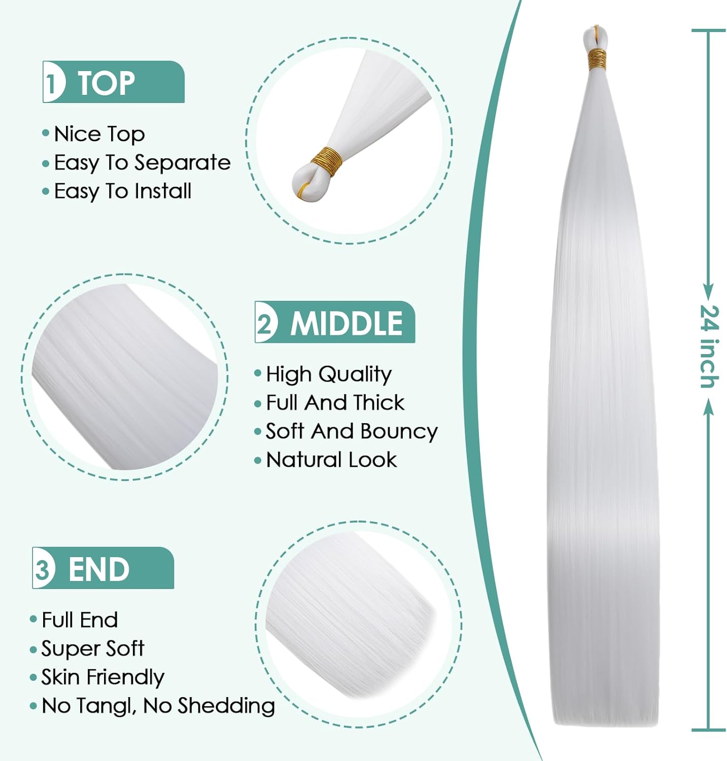 【High-quality hair】The straight hair extension is made of premium quality synthetic fiber that is soft, smooth, and tangle-free. It provides a natural look and feel, making it perfect for complementary volume and braiding styles