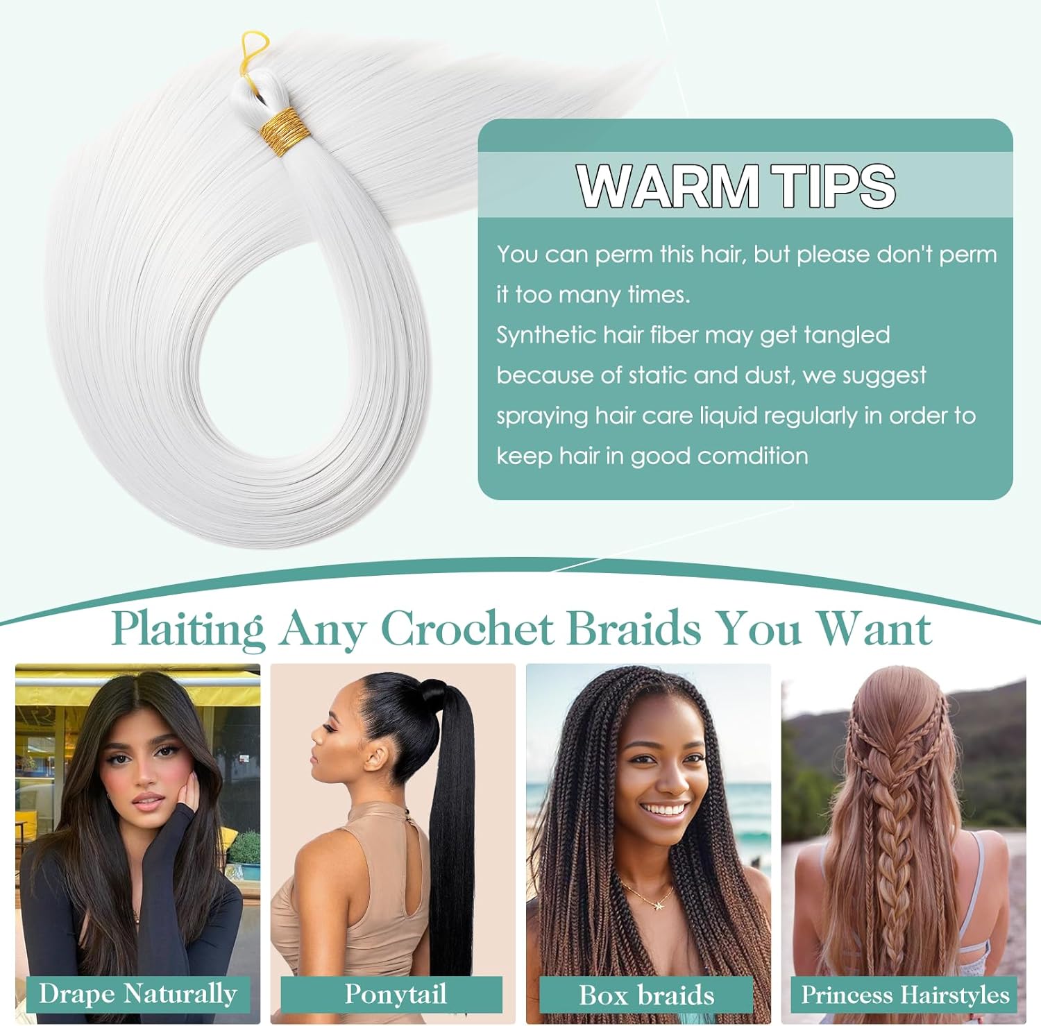 【Versatile braiding options】Our braiding hair is not limited to box braids. With its high-quality synthetic fiber and flexibility, it can be used for various styles, including ponytails and natural draping. Let your creativity shine with our versatile braiding hair