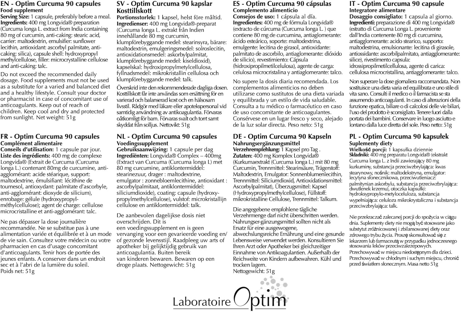 🔬EEN BIO-GEOPTIMALISEERDE CURCUMINE: De Longvida-curcumine in Optim Curcuma verbetert de biologische beschikbaarheid van curcumine (extract van kurkuma). Bevat geen zwarte peper of piperine.
