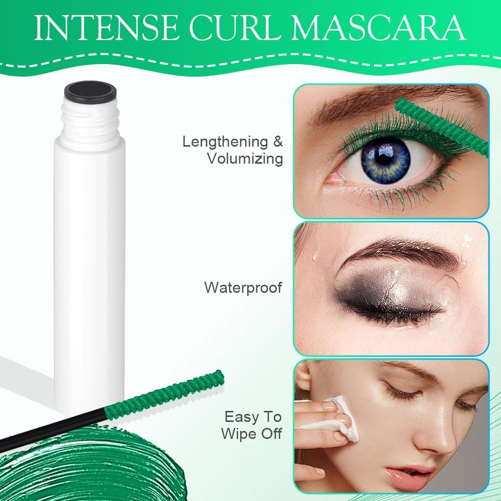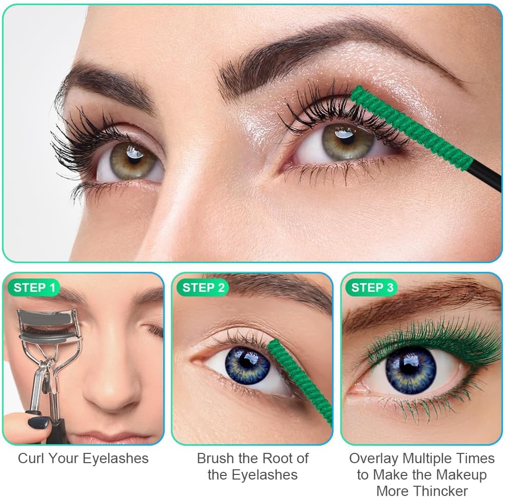 LOPHE Fijnkleurige mascara, waterbestendig, 5D zijdevezel, fijne kwast, waterbestendig, duurzaam, veegvast, volumineus en charmant, Fast Dry False Lash Effect Extension (Groen, 1pcs)