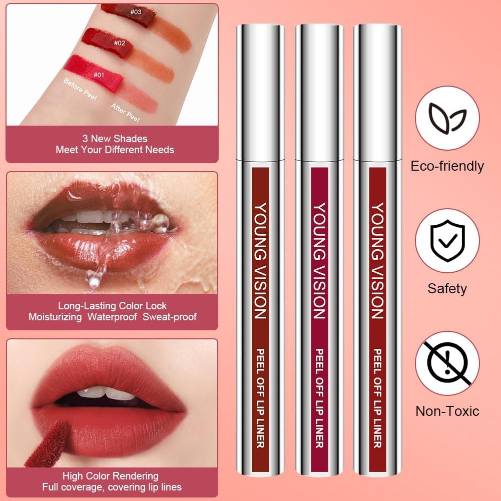 LOPHE Peel Off Lip Stain Set, 3 Colors Lip Liner Tattoo Waterproof and Long Lasting, Lip Liner Set Lipstick Matt, High Color Rendering (B)
