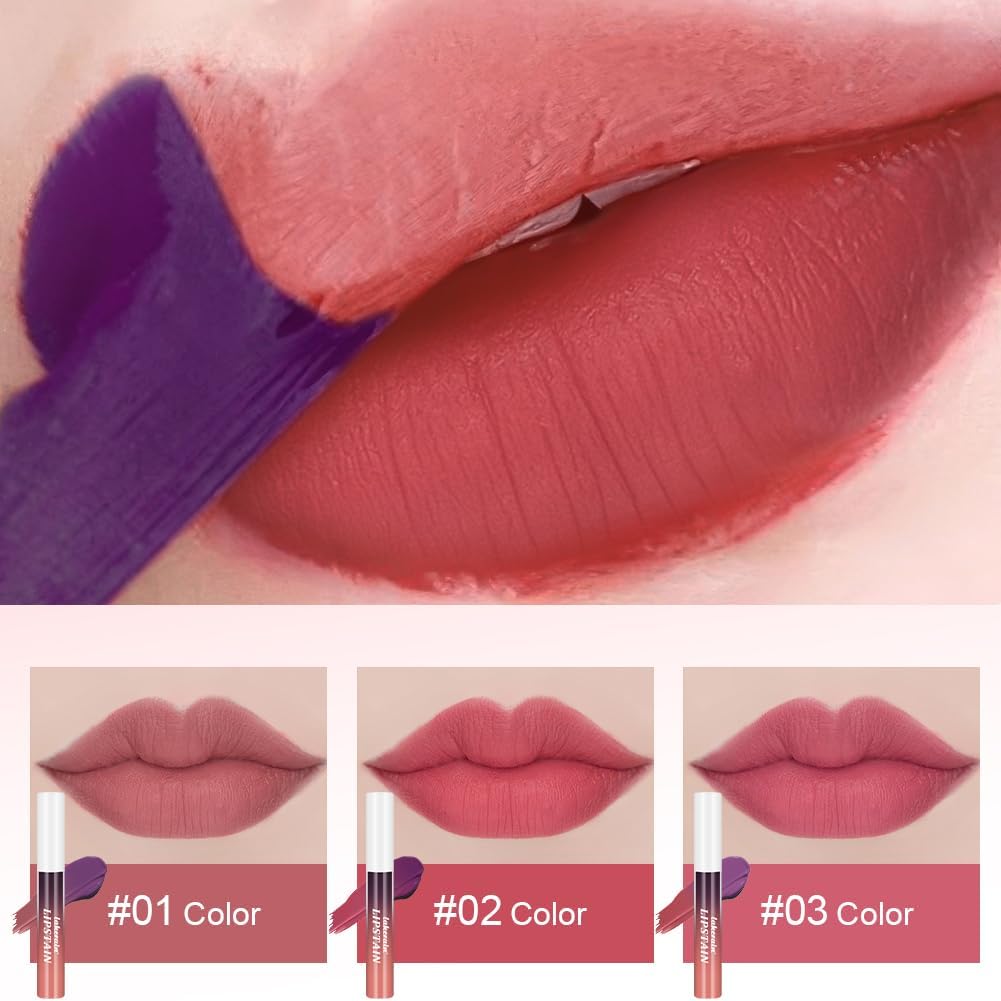 LOPHE Peel Off Lip Stain Set, 3 Colors Lip Liner Tattoo, Waterproof and Long Lasting, Lip Liner Set, Lipstick, Matt, High Color Rendering (C)