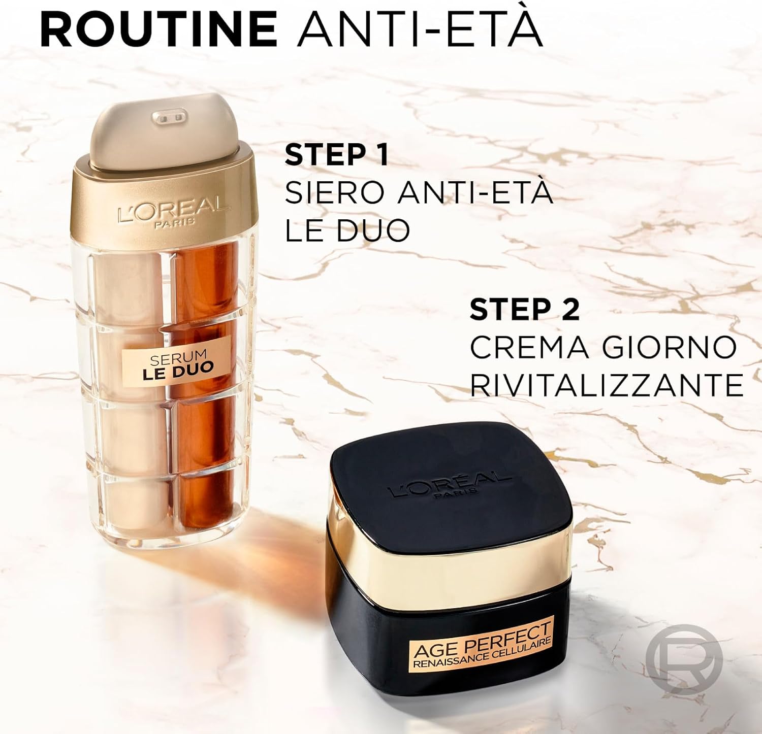 Produktbeschreibung Anti-Aging-Serum mit doppelter Wirkung, das Falten und stumpfen Teint entgegenwirkt für eine sofort strahlende und verjüngte Haut, dermatologisch getestet und für alle Hauttypen geeignet – Straffere Haut nach 1 Woche, deutlich reduzierte Fältchen, heller, kompakter und gleichmäßiger Teint – Aktivieren Sie den Spender durch mehrmaliges Drücken und tragen Sie das Serum mit kreisenden Bewegungen auf die gereinigte Haut von Gesicht und Hals auf. ari vor der Tagescreme o der Nachtroutine der Linie Age Perfect – Formel mit leichter Textur, angereichert mit Kollagen-Peptiden und Vitaminen B3 und C, die das Hautgewebe regeneriert und Festigkeit, Festigkeit und Volumen verleiht und Falten und feine Linien beseitigt – Inhalt: 1 x L’Oréal Paris Anti-Aging-Serum, für alle Hauttypen, doppelte Wirkung, straffend und aufhellend, weiche und nährende Haut, ohne Falten, mit Klebstoff. Agen und Vitamine B3 und C Age Perfect 30ml Warnhinweise Die Inhaltsstofflisten der Produkte unserer Marke werden regelmäßig aktualisiert. Bitte lesen Sie die Liste auf der Produktverpackung, um sicherzustellen, dass die Inhaltsstoffe für Ihren persönlichen Gebrauch geeignet sind.