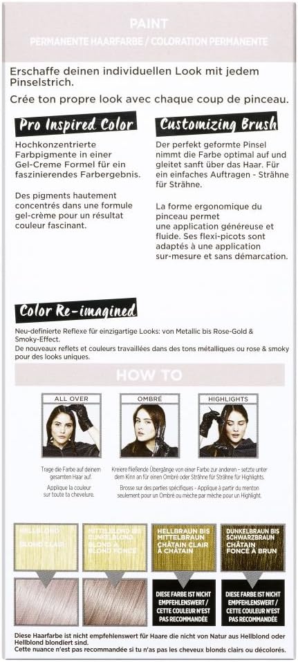 Met de L’Oréal Paris Colovista Permanent Paint #ROSEBLONDE kun je heel individuele looks creëren en behouden. De sterk geconcentreerde pigmenten in een gelcrème-formule geven de kleur een intensieve helderheid. En dankzij de nieuw gedefinieerde metalen reflexen ziet hij er vanuit elke hoek anders uit. Maar dat is niet alles: voor een eenvoudig en nauwkeurig aanbrengen zorgt de perfect gevormde borstel. Hij neemt de kleur optimaal op – zo worden de haarstrengen voor strengen zacht met de kleur omsloten. L’Oréal Paris Colovista Permanent Paint #Rose Blonde: de haarverf die meer kan. Voor een langdurig kleurresultaat kun je het haar het beste wassen met de L’Oréal Paris Elvital Color-Glans-verzorgingsshampoo. De kleurbeschermende shampoo verzorgt het haar intensief en beschermt de kleur in drie dimensies: kleurgetrouwheid, kleurintensiteit en helderheid.