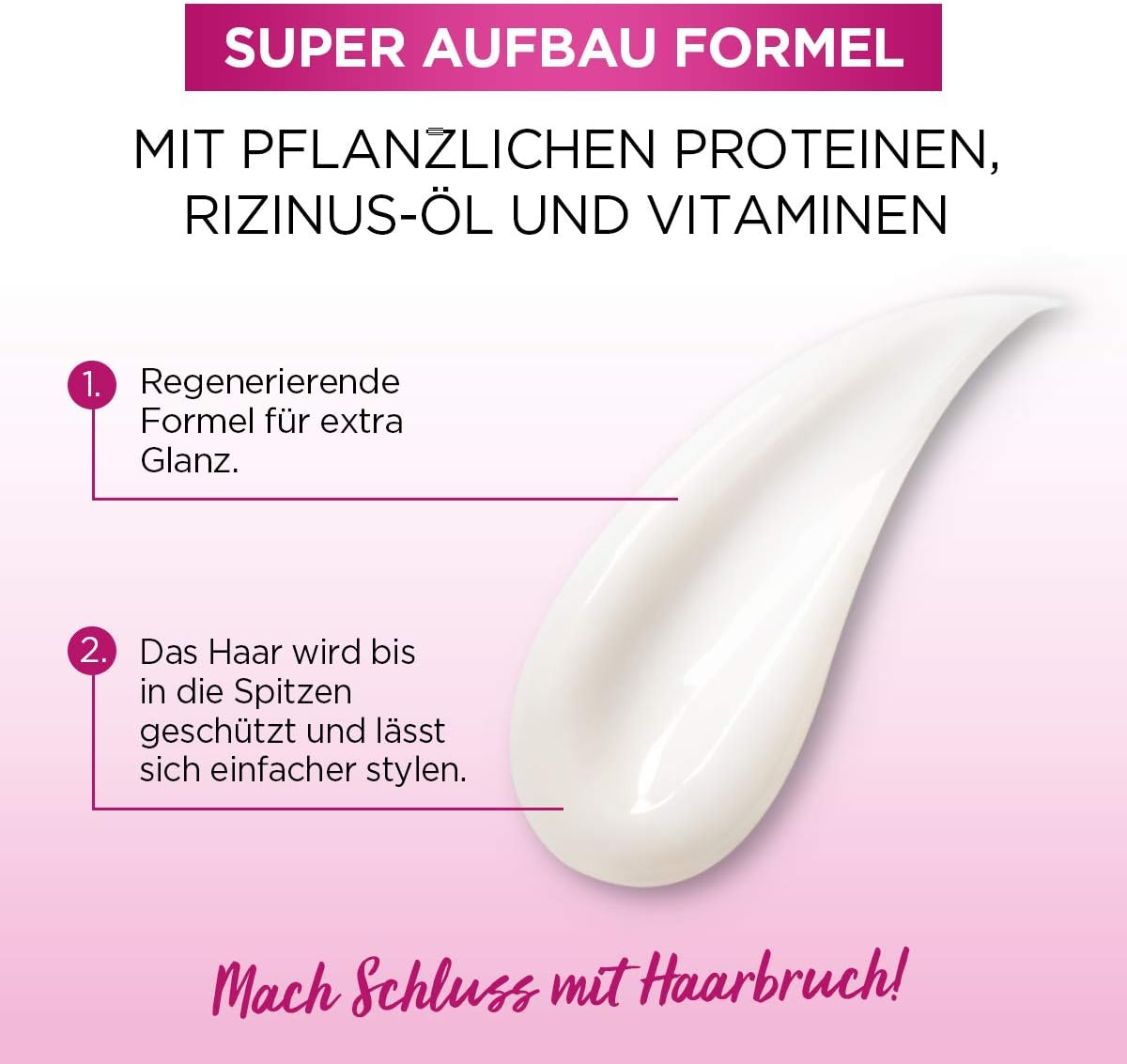 Verzorgende kuur voor lang, beschadigd haar ter bescherming tegen gespleten haarpunten, haarbreuk en hitte bij het föhnen of gladmaken (tot 180 °C); voor fantastisch lang haar