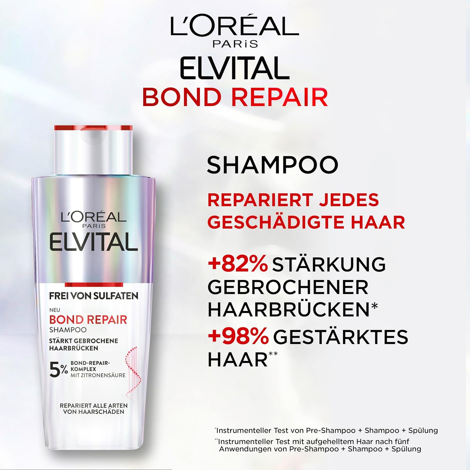 L’Oréal Paris Elvital Routine voor haarreparatie met shampoo, conditioner en pre-shampoo, met bond-repair-complex en citroenzuur, voor minder haarbreuk en meer glans, Bond Repair, 3-delig