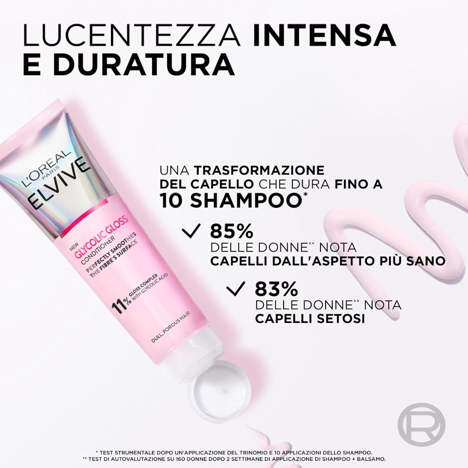 L’Oréal Paris Elvive Glycolic Gloss Conditioner 150ml + Shampoo 200ml + Leave-In Serum 150ml Set Voor Dof en Poreus Haar Intense en Langdurige Glans – 3 Flessen