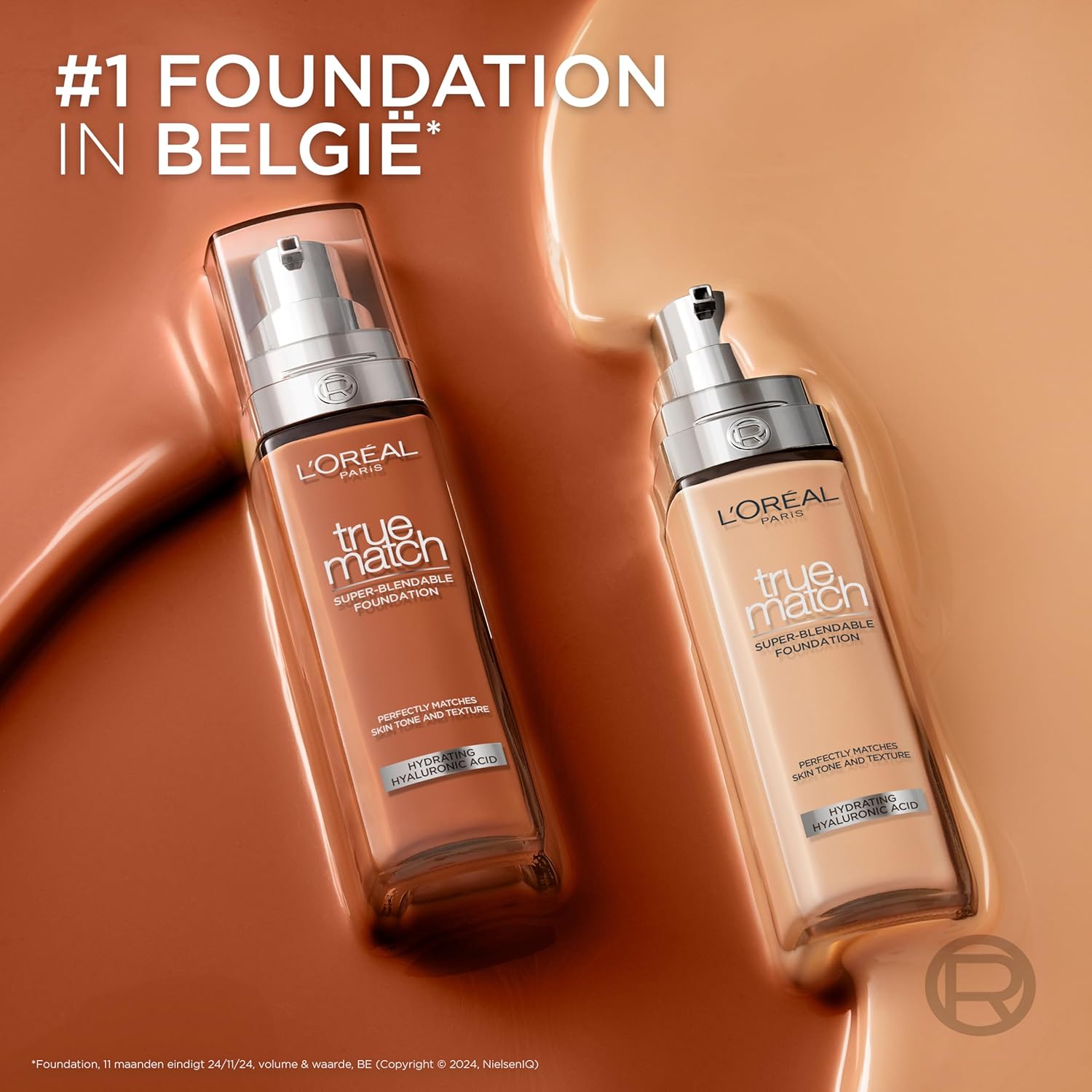 Try the True Match foundation from L’Oréal Paris, the number 1 Foundation in the Netherlands. * Our labs have taken on the challenge to investigate how they can make True Match match even better with your skin tone and developed a new skin-matching technology. The renewed formula now contains up to 6 different pigments to better match the nuances of each skin tone. The mix of different pigments ensures that the foundation melts nicely with the skin. The color perfectly matches the tone of the skin for a natural result. True Match is also known for its nourishing ingredients, so this foundation not only gives a beautiful natural result but also moisturizes the skin. Its formula, enriched with hyaluronic acid, improves the quality of the skin after 2 weeks. ** The skin radiates and is visibly more even. The moisturizing foundation is suitable for sensitive skin, is perfume-free and does not clog pores. The creamy texture feels comfortable on the skin and is easy to apply evenly, without streaks or visible transitions. Spots and imperfections are less visible. True Match foundation is available in 45 colors – each with SPF 16.