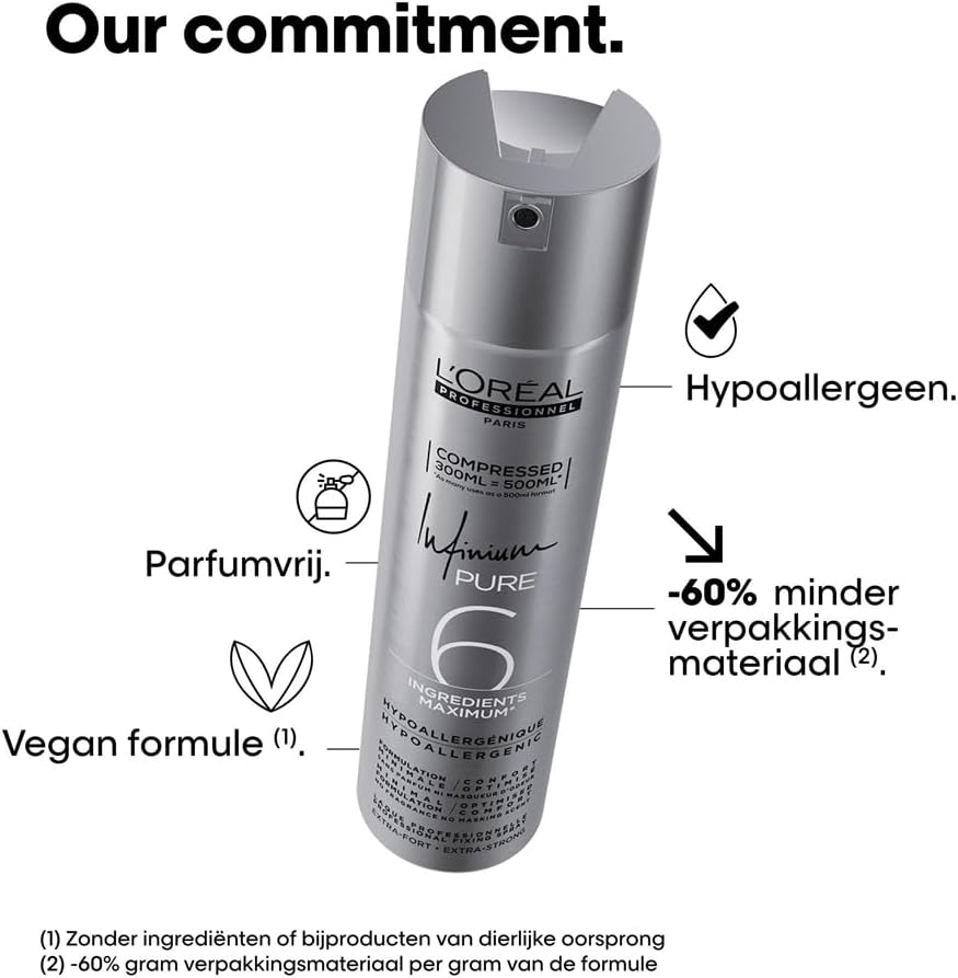L’Oréal Professionnel, Extra Sterke en Fixerende Haarspray, Extreme Fixatie, Zonder Zwaar Gevoel en Geurloos, Infinium Extra Strong, 300ml