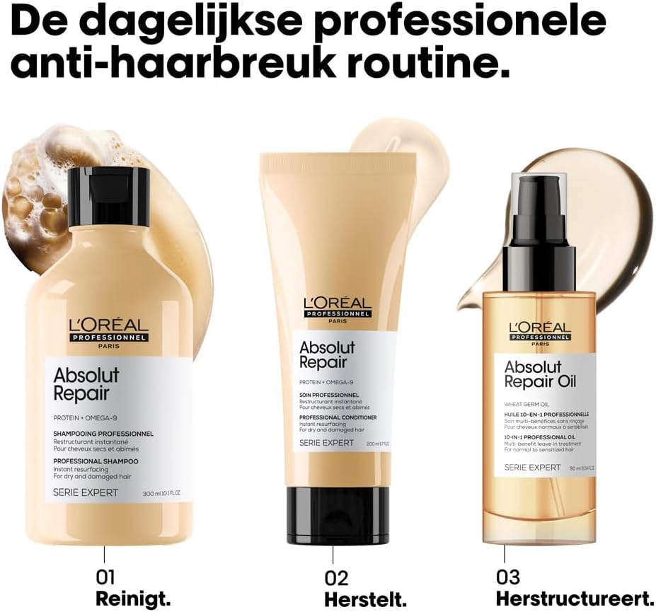 L’Oréal Professionnel, Herstellende Shampoo, Voor Beschadigd en Droog Haar, Herstelt en Herstructureert Het Haar Zonder Het te Verzwaren, Met Proteïnen, Absolut Repair, 500ml
